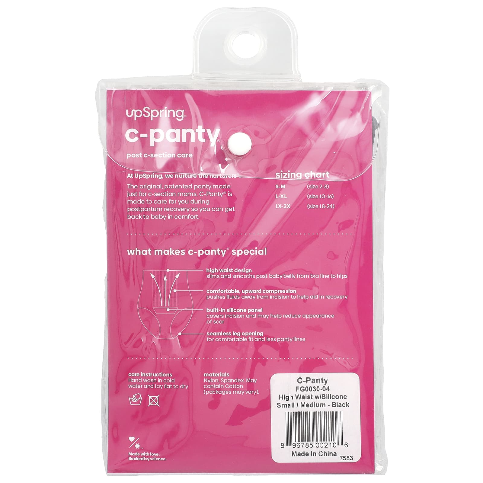 UpSpring, C-Panty®, уход после кесарева сечения, с силиконовой вставкой, высокая талия, маленький / средний, черный, 1 шт.