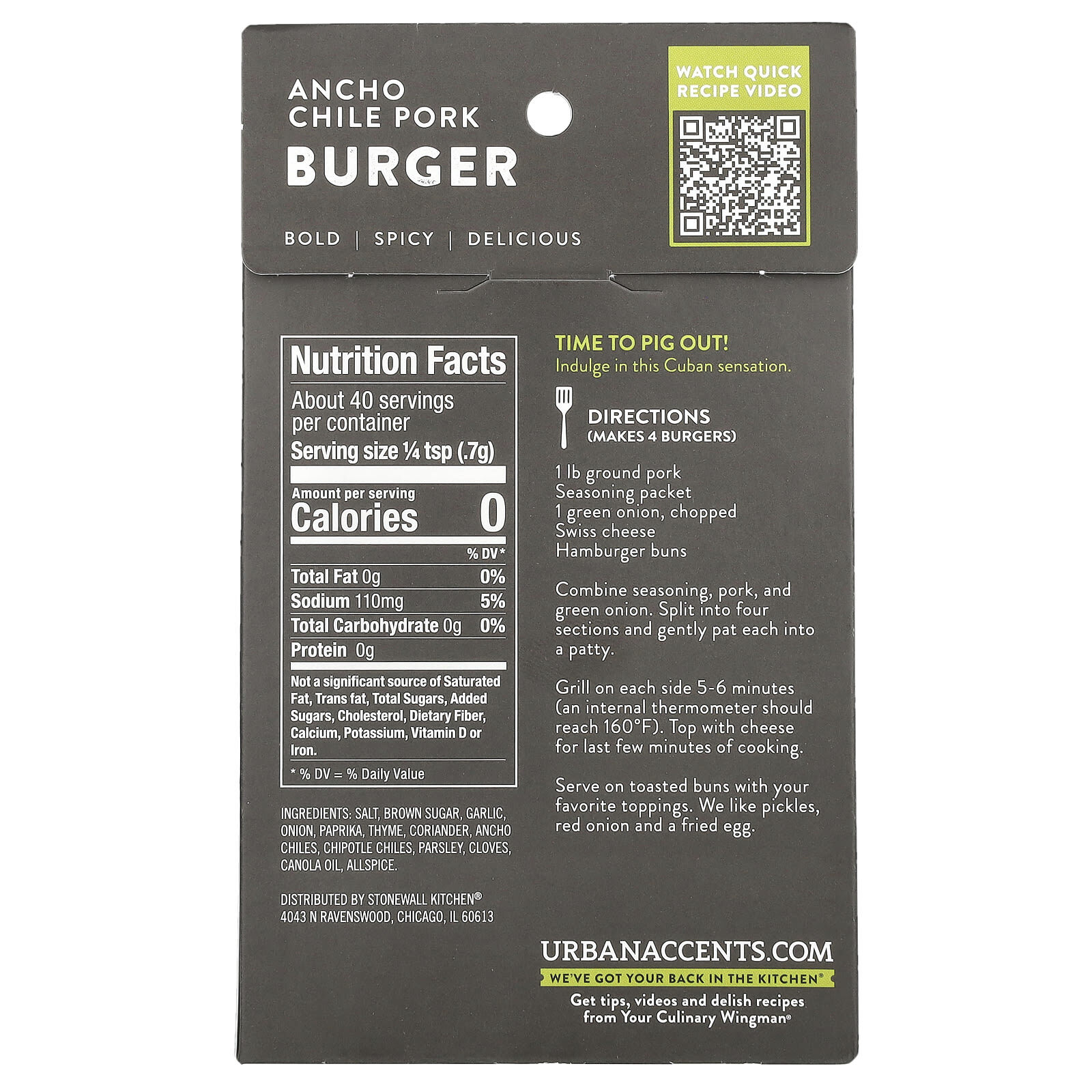 Эта яркая смесь специй придаст вашему бургеру дымный вкус анчо и чипотле, паприки, кориандра, душистого перца и сладкого коричневого сахара. Смесь бургеров со свининой и анчо и чили от Urban Accents отлично сочетается со свининой, говядиной, индейкой или даже вегетарианским бургером! Сверху добавьте соленые огурцы, швейцарский сыр и горчицу и сделайте свой сэндвич в кубинском стиле!