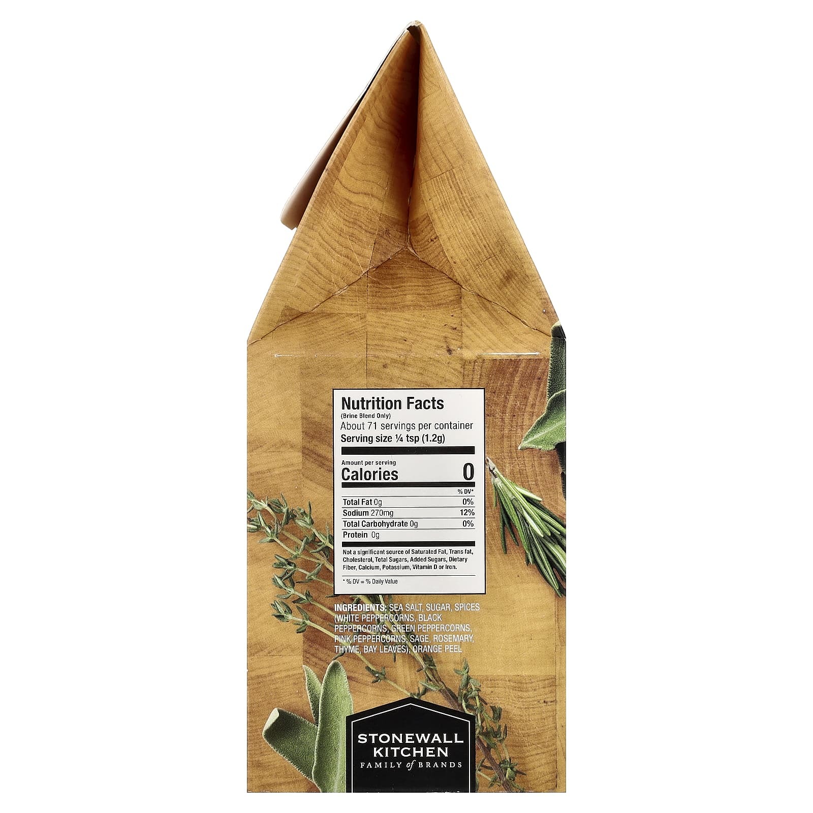 Смесь рассола: Морская соль, сахар, специи (белый перец горошком, черный перец горошком, зеленый перец горошком, розовый перец горошком, шалфей, розмарин, чабрец, лавровый лист), апельсиновая цедра.