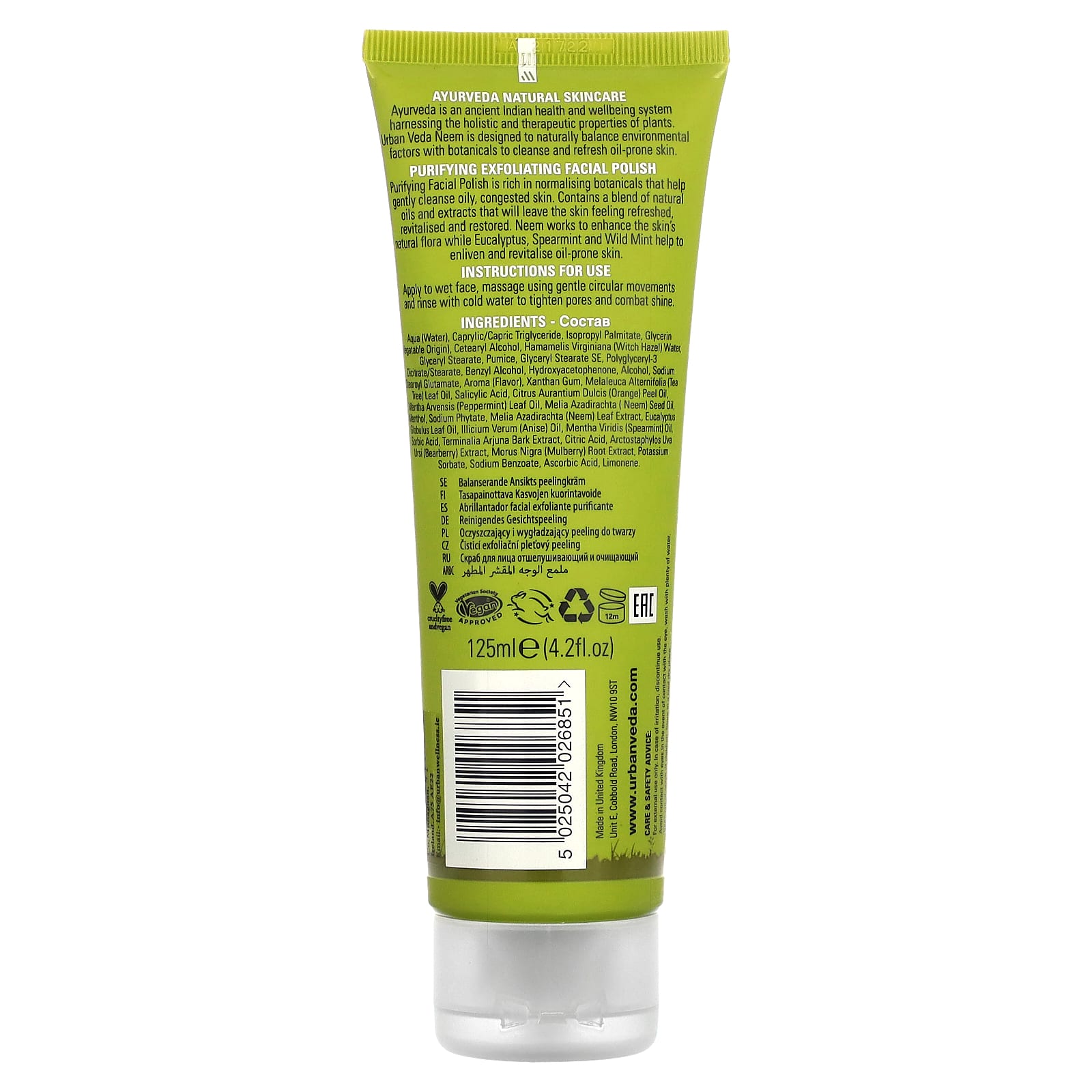 Очищающий скраб для лица содержит нормализующие растительные компоненты, которые помогают мягко очистить жирную, раздраженную кожу. Содержит смесь натуральных масел и экстрактов, которые придают коже ощущение свежести и восстановления. Ним улучшает естественную флору кожи, а эвкалипт, мята колосистая и дикая мята помогают оживить и оживить склонную к жирности кожу.