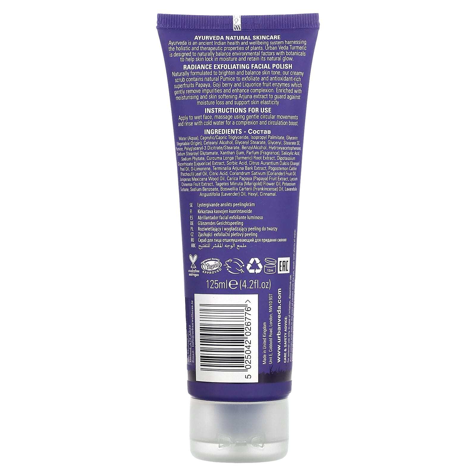 Аюрведа — это древнеиндийская система здоровья и хорошего самочувствия, использующая комплексные и терапевтические свойства растений. Куркума от Urban Veda естественным образом сбалансирована с растительными компонентами, которые помогают коже удерживать влагу и сохранять ее естественное сияние.