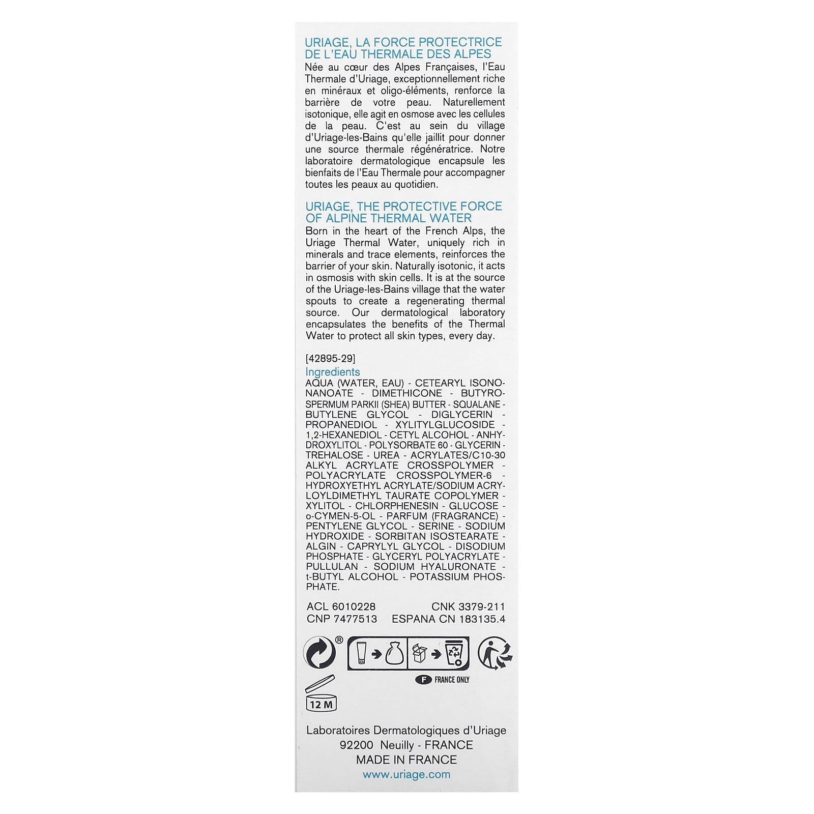 Термальная вода Uriage, родившаяся в самом сердце французских Альп, уникально богата минералами и микроэлементами, укрепляет защитный барьер вашей кожи. Естественно изотонический, он действует на клетки кожи путем осмоса. Именно у истоков поселка Урьяж-ле-Бен извергается вода, образуя регенерирующий термальный источник. В нашей дерматологической лаборатории используются преимущества термальной воды для ежедневной защиты всех типов кожи.