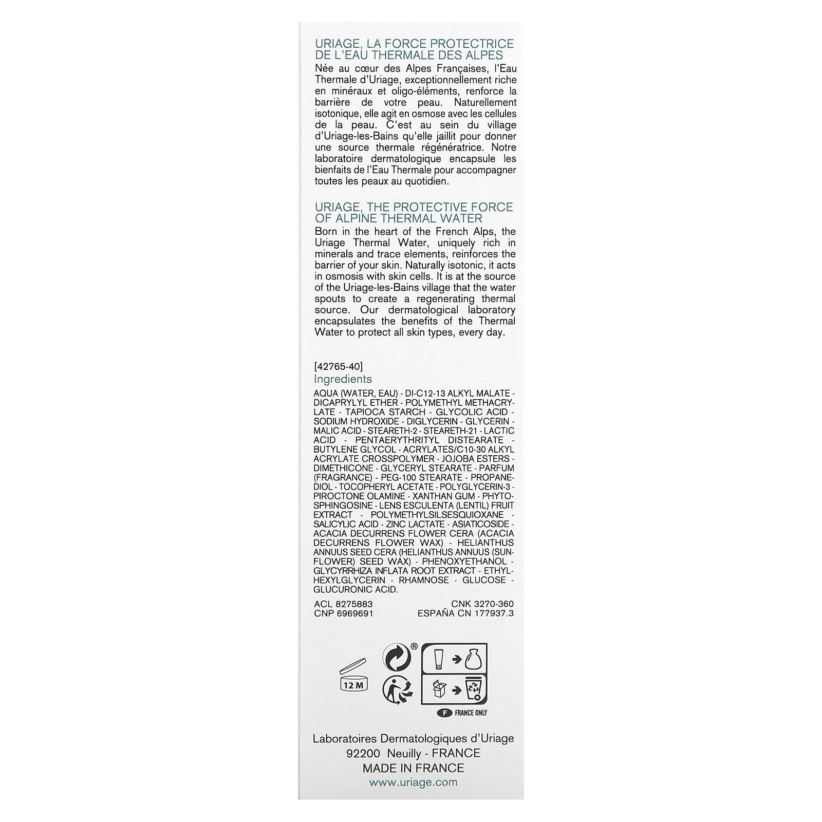Инновация 3 патента: Повышенная эффективность благодаря сочетанию эксклюзивных активных ингредиентов и термальной воды Uriage.