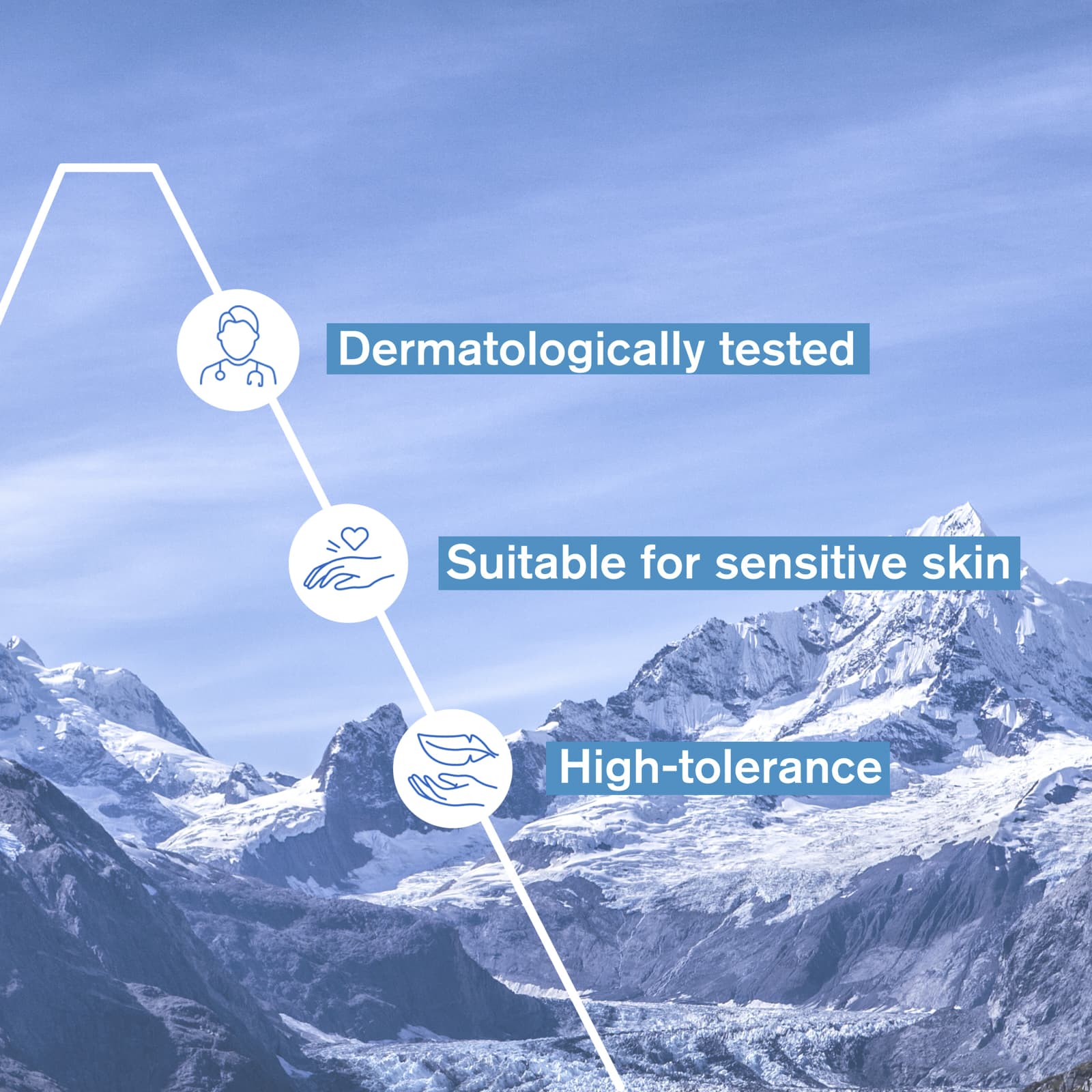 Aqua (вода, eau), глицерин, этилгексил пальмитат, гидратированный диоксид кремния, бутиленгликоль, полиакрилат натрия, 1,2-гександиол, цетиловый спирт, стеарет-2, стеарет-21, парфюмерная композиция (отдушка), глюконолактон, глицерил бегенат, глицерил стеарат, ПЭГ-100 стеарат, ксантановая камедь, микрокристаллическая целлюлоза, хлорфенезин, целлюлоза, о-цимен-5-ол, спирт, экстракт цветков и листьев эдельвейса альпийского (Leontopodium alpinum), CI 77510 (ферроцианид железа), тальк, лимонная кислота, гидроксид натрия.