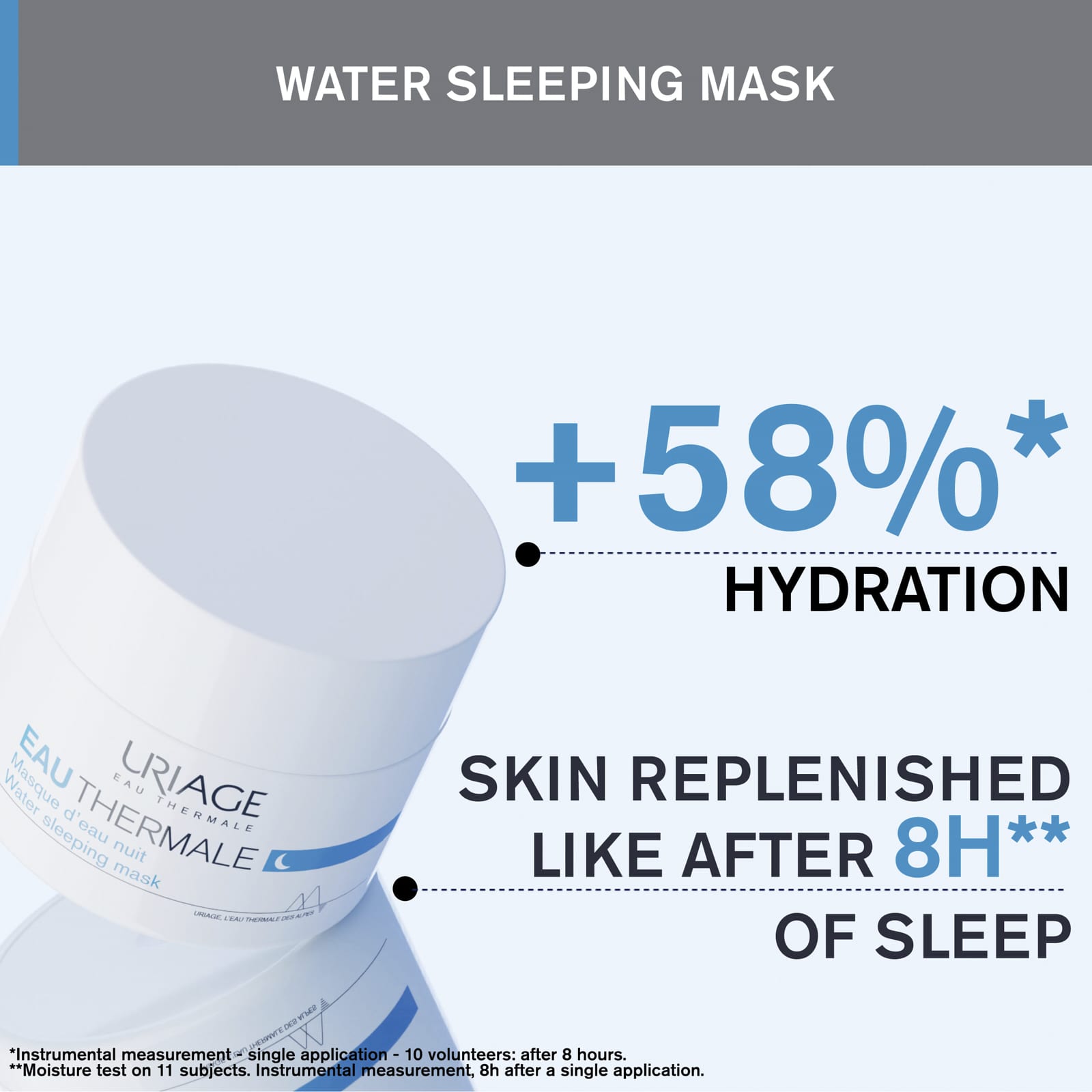 Увлажняющая сила термальной воды Uriage в уникальной ночной маске с ультралегкой желейной текстурой.
