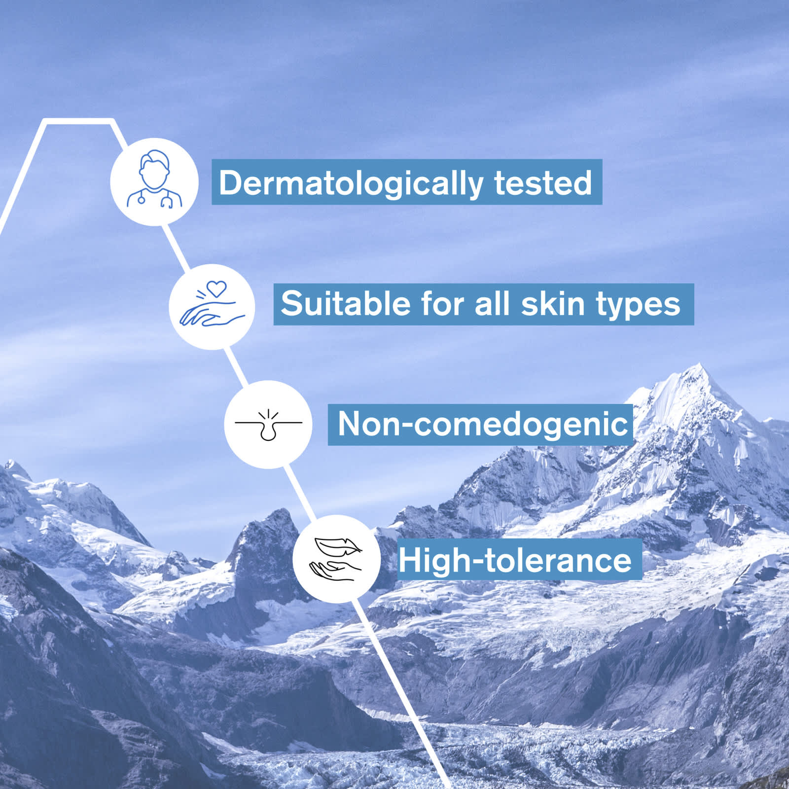Вода, бутиленгликоль, диметикон, глицерин, 1,2-гександиол, сквалан, аммоний акрилоилдиметилтаурат/ВП сополимер, ксилитилглюкозид, трегалоза, мочевина, ангидроксилитол, хлорфенезин, ксилитол, о-цимен-5-ол, пентилен гликоль, серин, парфюмерная композиция (отдушка), гиалуронат натрия, глюкоза, альгин, каприлилгликоль, динатрия фосфат, глицерил полиакрилат, пуллулан, спирт, экстракт цветков и листьев эдельвейса альпийского (Leontopodium alpinum), фосфат калия, CI 42090 (синий 1), лимонная кислота, гидроксид натрия.