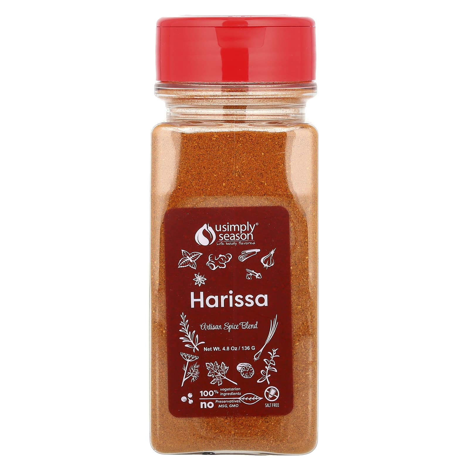 Смесь специй USimplySeason Harissa - это смелая и пряная приправа, сочетающая ароматы Марокко, Туниса и Алжира. Эта огненная смесь изготовлена из запатентованной смеси специй, включая порошок чили, копченую паприку, тмин, чеснок, кориандр и мяту. Оно идеально подходит в качестве сухого средства для приготовления мяса, птицы и овощей на гриле, придавая им неповторимый вкус и жар. USimplySeason Harissa также добавляет пикантности в супы, рагу и кускус. Улучшите свои кулинарные способности и насладитесь ярким вкусом смеси специй USimplySeason Harissa.
