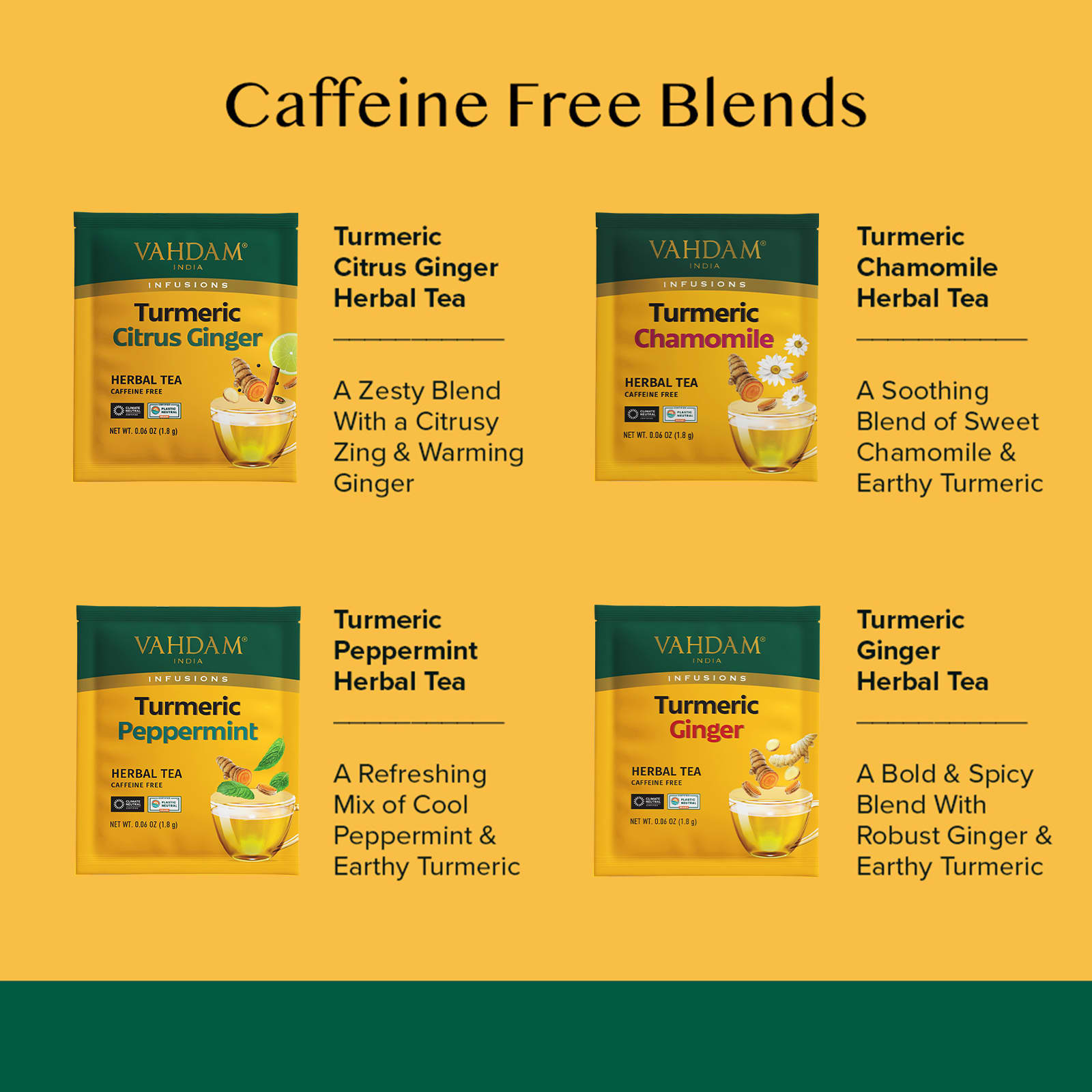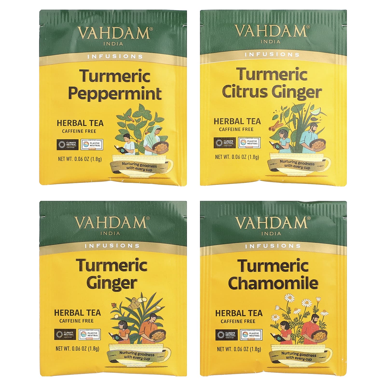 Травяной чай с куркумой и имбирем: Куркума*, корица*, лемонграсс*, кардамон*, имбирь*, черный перец*, натуральный ароматизатор «Бергамот»*.