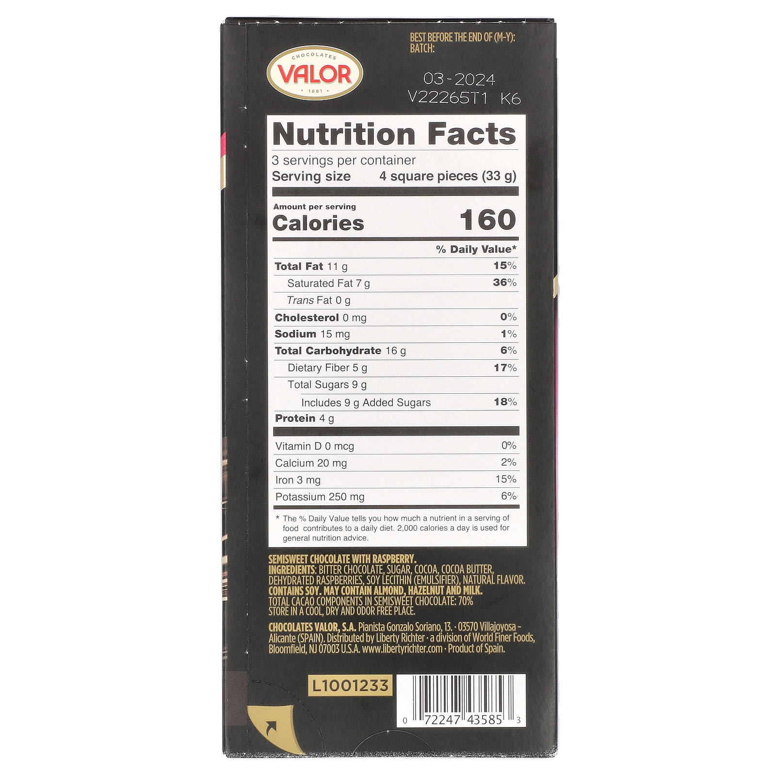 Горький шоколад, сахар, какао, какао-масло, обезвоженная малина, лецитин из сои (эмульгатор), натуральный ароматизатор.