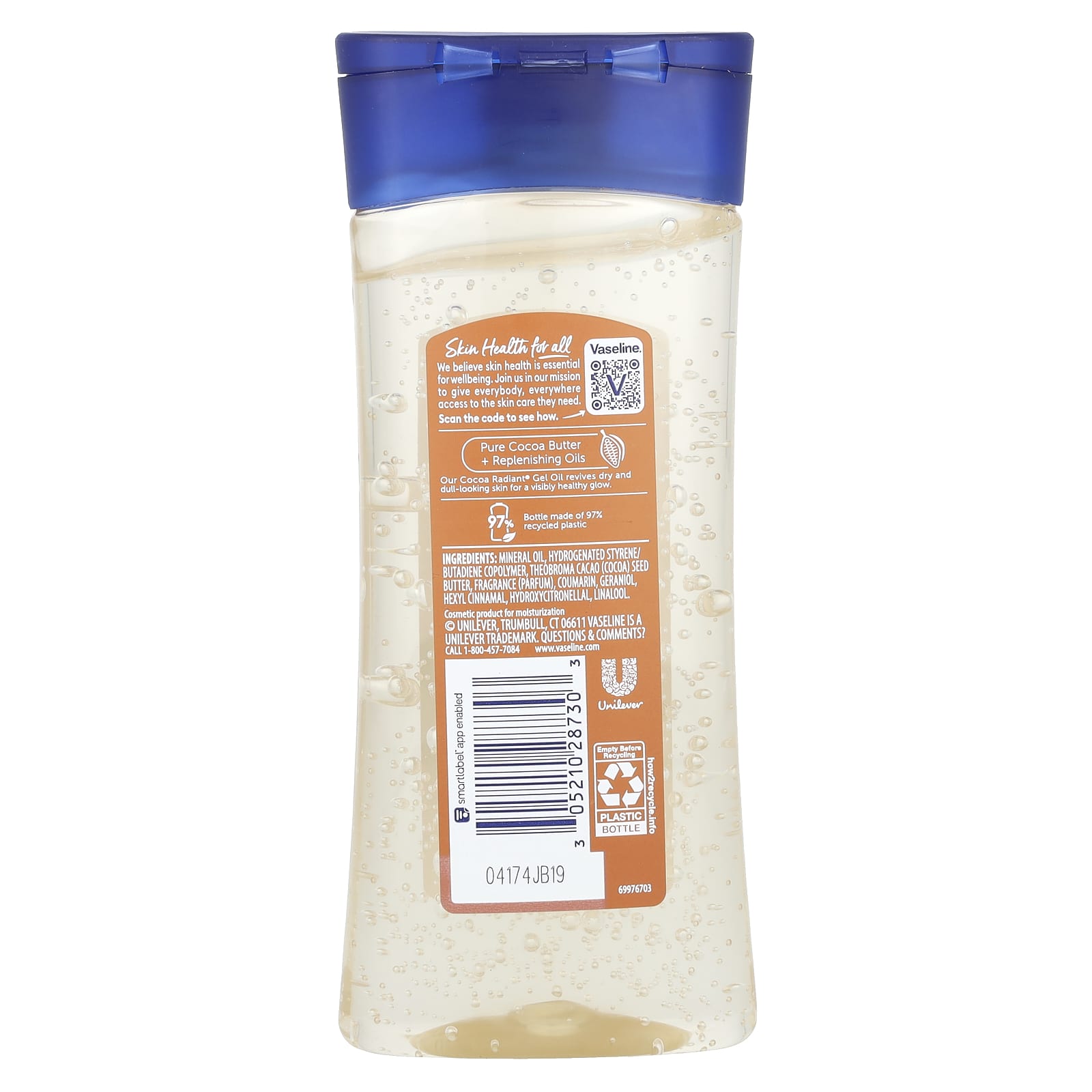 Минеральное масло, гидрогенизированный сополимер стирола и бутадиена, масло из зерен какао (Theobroma cacao), отдушка (парфюмерная композиция), кумарин, гераниола, гексил циннамал, гидроксицитронеллаль, линалоола.