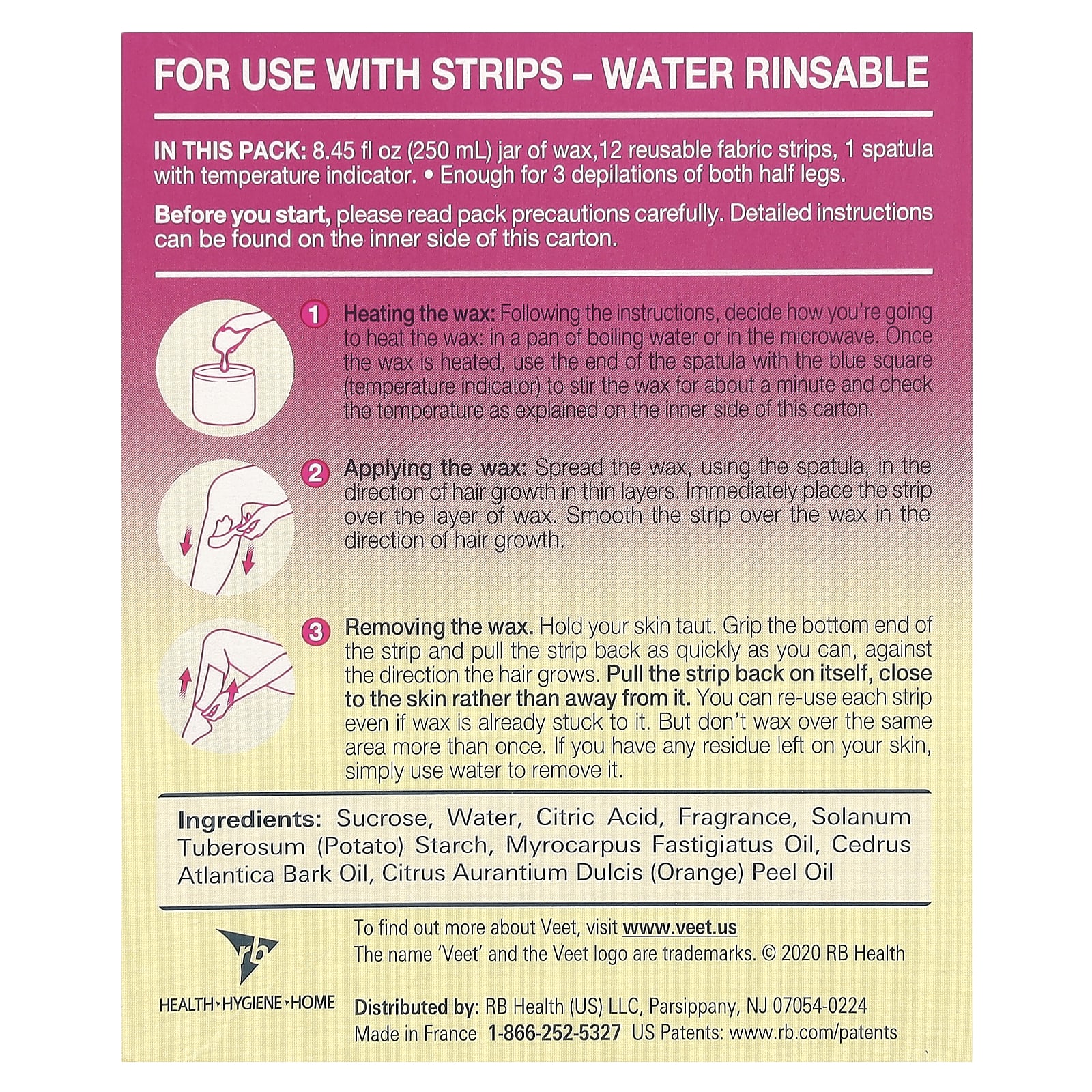 Сахарный воск Veet, содержащий 99% натуральных ингредиентов, обеспечивает долгосрочные результаты и делает кожу увлажненной и гладкой на ощупь.