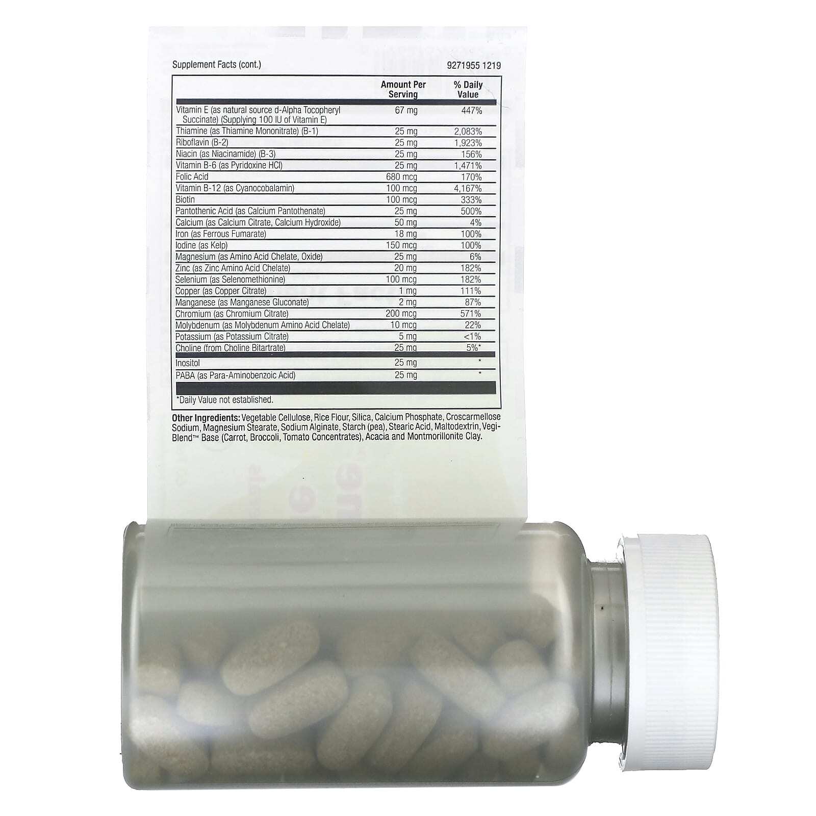Растительная целлюлоза, рисовая мука, диоксид кремния, фосфат кальция, кроскармеллоза натрия, стеарат магния, альгинат натрия, крахмал (гороховый), стеариновая кислота, мальтодекстрин, основа VegiBlend™ (морковь, брокколи, концентраты томатов), акация и монтмориллонитовая глина.