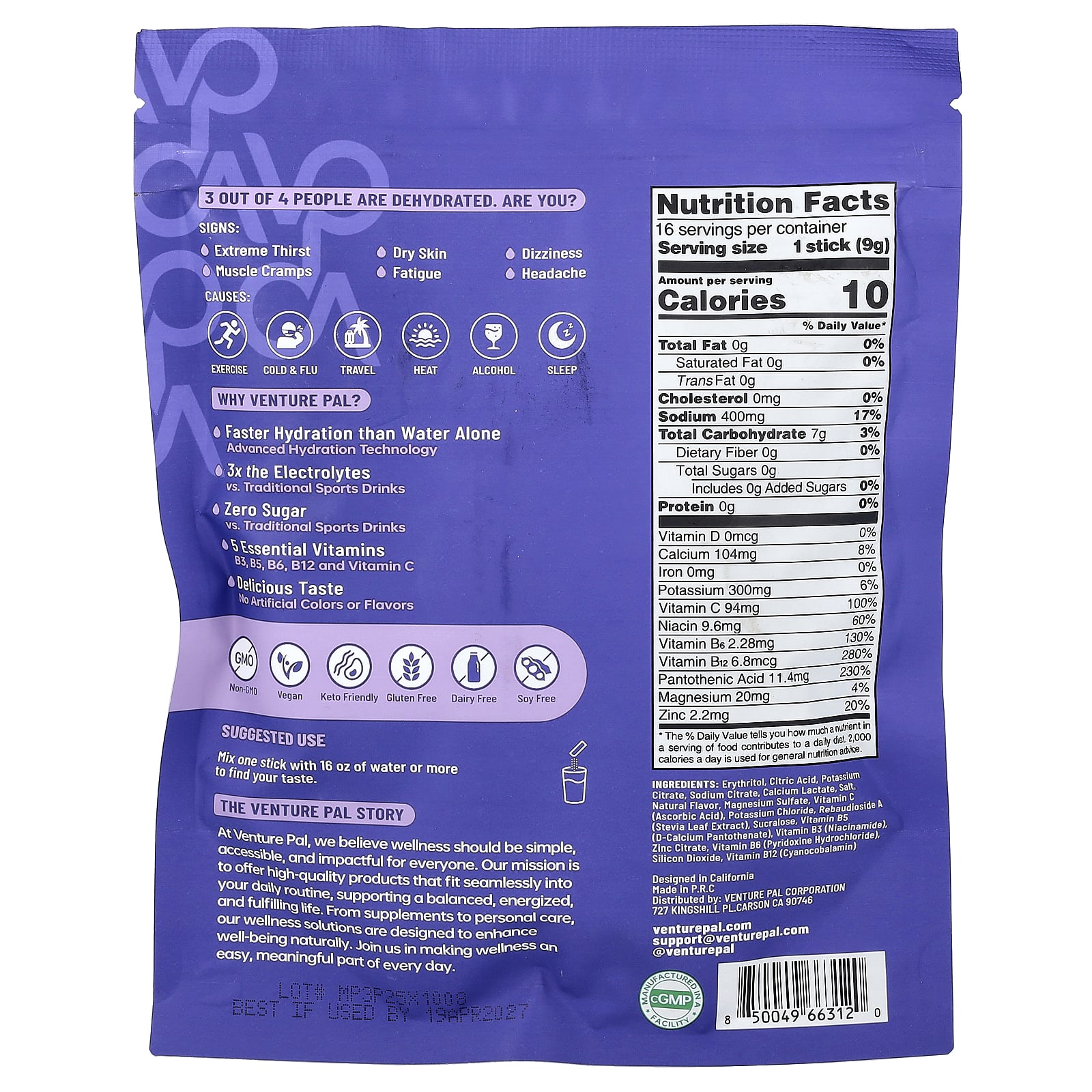 Эритритол, лимонная кислота, цитрат калия, цитрат натрия, лактат кальция, соль, натуральный ароматизатор, сульфат магния, витамин C (аскорбиновая кислота), хлорид калия, ребаудиозид A (экстракт листьев стевии), сукралоза, витамин B5 (d-пантотенат кальция), витамин B3 (никотинамид), цитрат цинка, витамин B6 (пиридоксина гидрохлорид), диоксид кремния, витамин B12 (цианокобаламин).