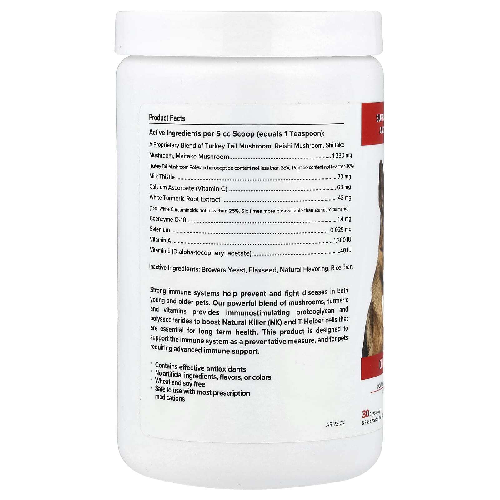 Сильная иммунная система помогает предотвращать заболевания и бороться с ними как у молодых, так и у пожилых животных. Наша мощная смесь грибов, куркумы и витаминов содержит иммуностимулирующий протеогликан и полисахариды для стимулирования естественных киллеров (NK) и Т-хелперов, которые необходимы для долгосрочного здоровья. Этот продукт разработан для поддержки иммунной системы в качестве профилактической меры, а также для домашних животных, которым требуется усиленная иммунная поддержка.
