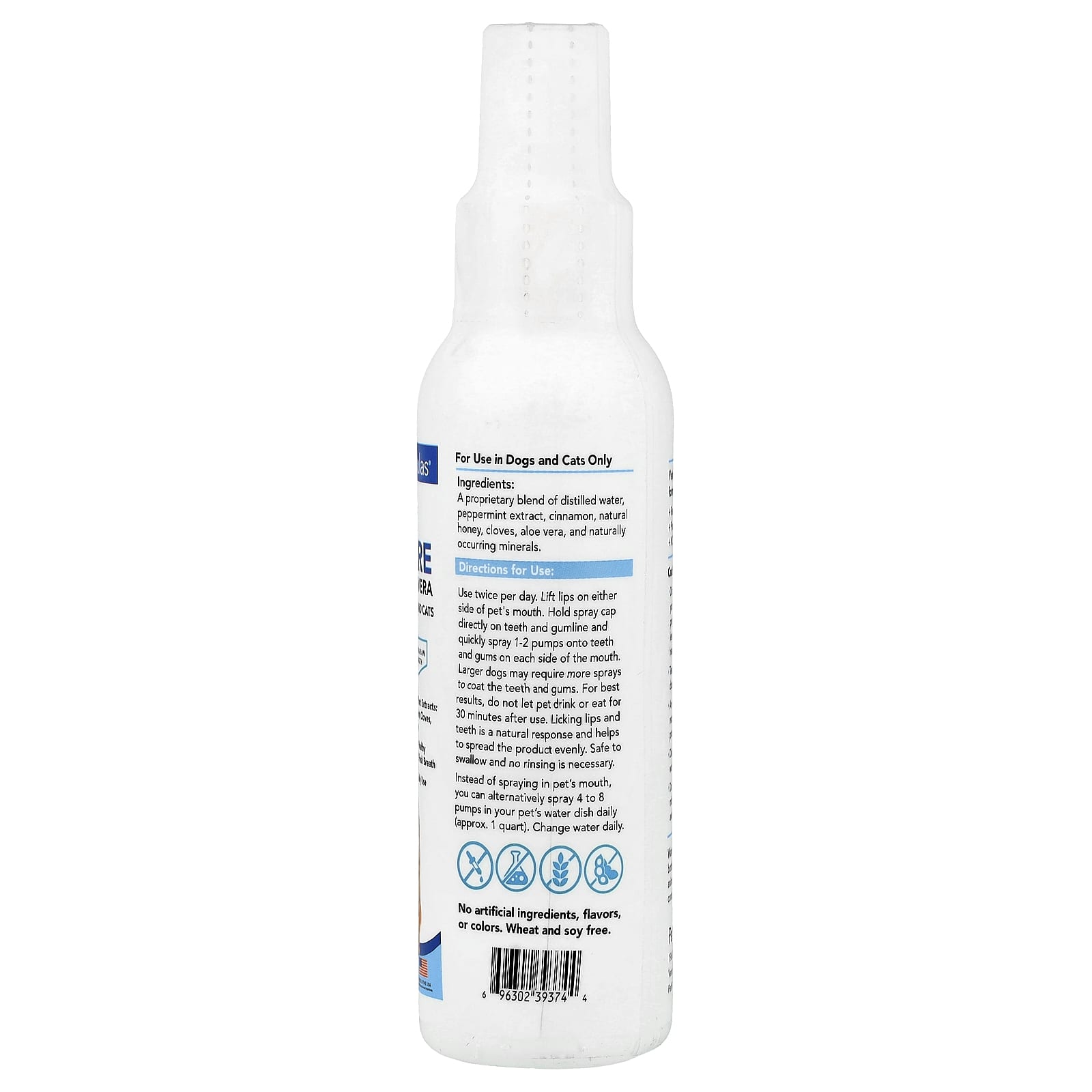Более крупным собакам может потребоваться больше спрея для покрытия зубов и десен. Для достижения наилучших результатов не позволяйте питомцу пить и есть в течение 30 минут после использования. Облизывание губ и зубов является естественной реакцией и помогает равномерно распределить продукт. Безопасно для глотания и не требует смывания. Вместо того, чтобы распылять средство в рот, вы можете в качестве альтернативы распылять 4–8 доз в миску с водой в день (прибл. 1 литр). Меняйте воду ежедневно.