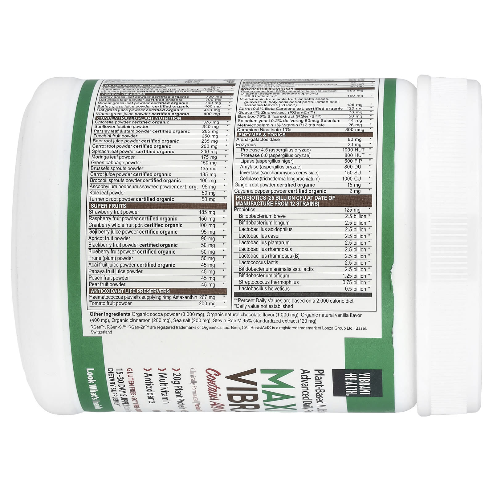 Maximum Vibrance известен как Futurefood ™, потому что он содержит все преимущества зеленого суперпродукта, а также фрукты и овощи с высоким содержанием антиоксидантов, растительный белок, 25 миллиардов пробиотиков и органические мультивитамины растительного происхождения. Он заряжает энергией, необходимой для достижения желаемого результата. Одна мерная ложка для здорового перекуса, две для полноценного приема пищи.