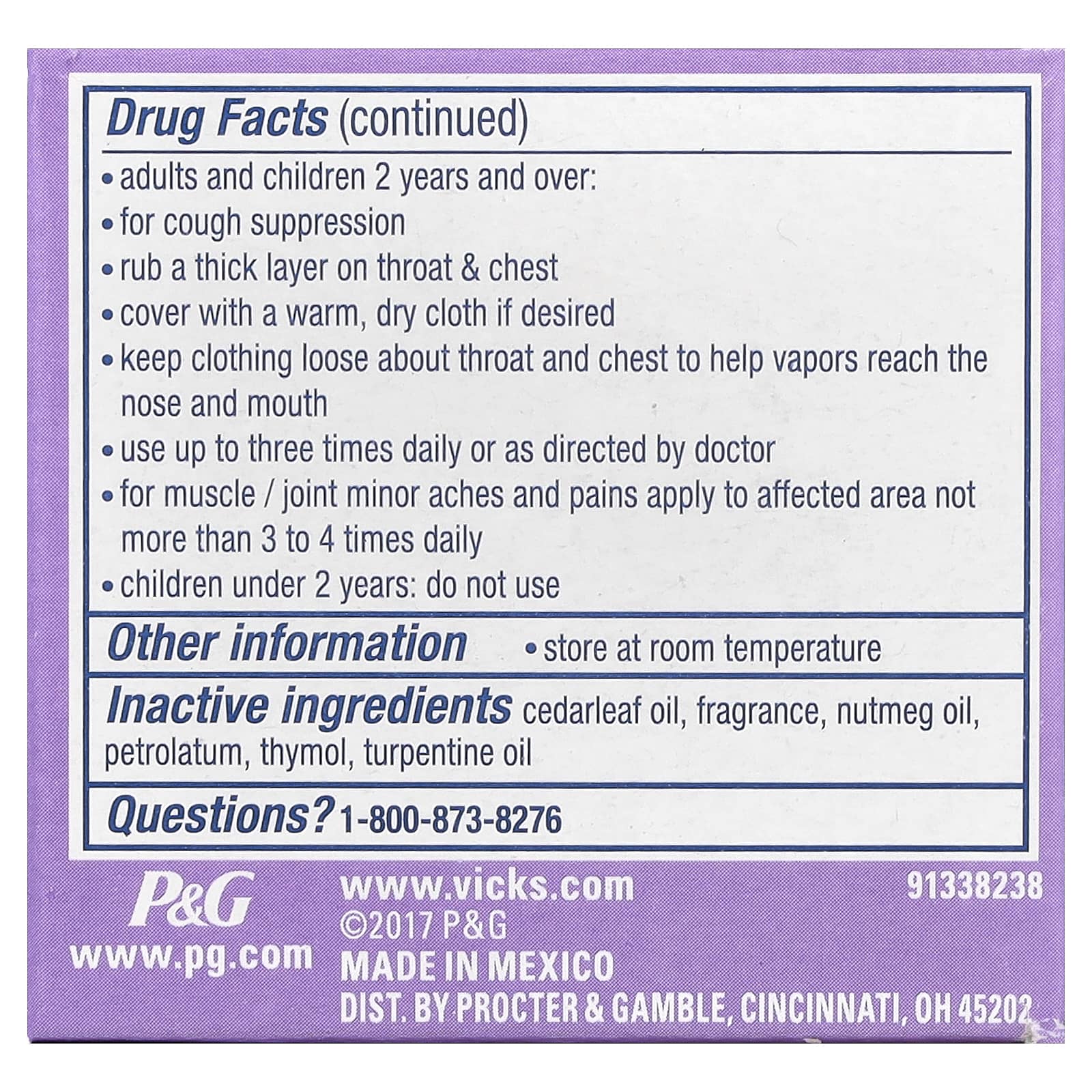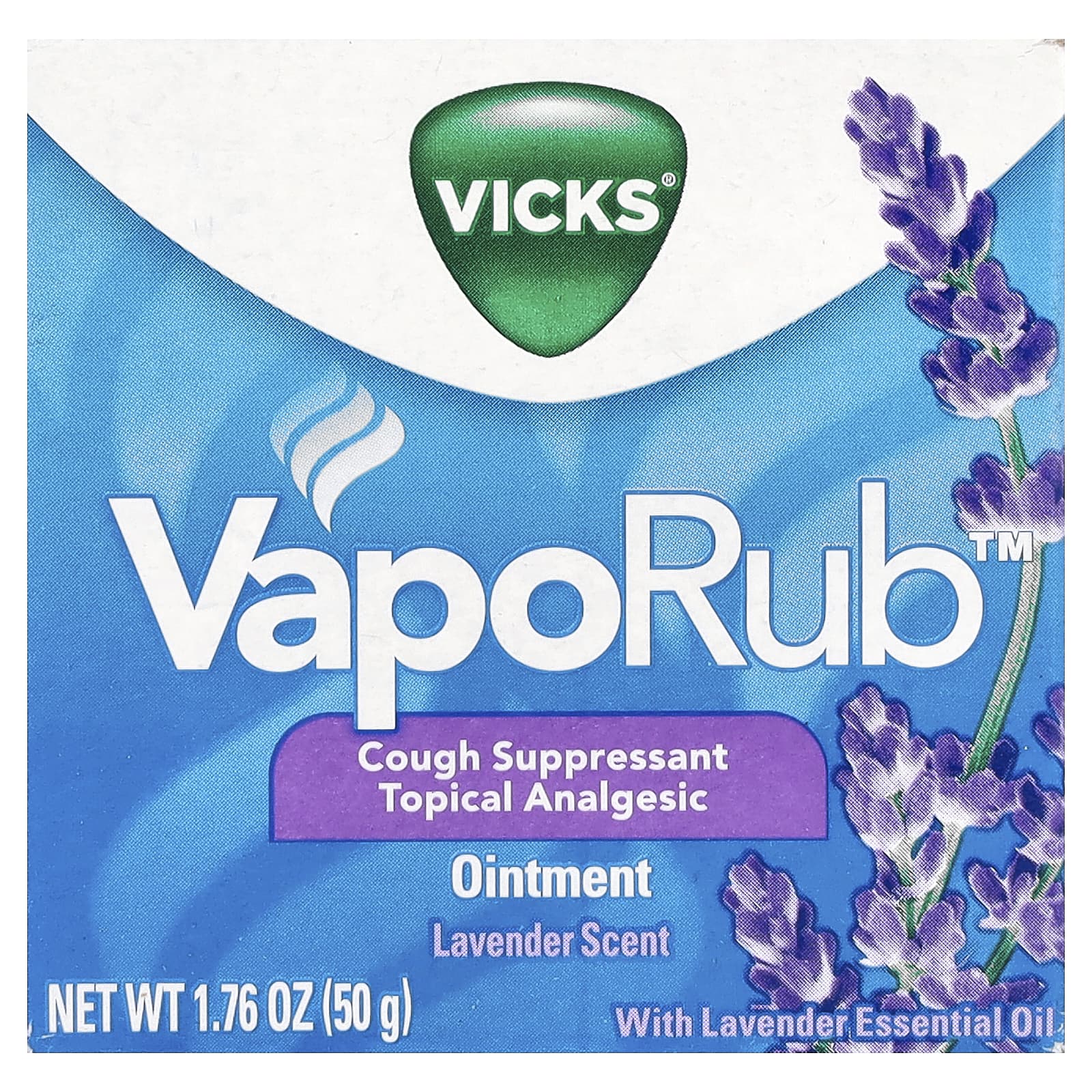 Почувствуйте мощь знакомого вам аромата Vicks Vapors с успокаивающим ароматом лаванды. Vicks VapoRub - это лекарство от кашля для местного применения с лечебными парами. Он быстро помогает избавиться от кашля, облегчая дыхание. В состав Vicks VapoRub входят три активных средства от кашля: ментол, камфора и эвкалиптовое масло.
