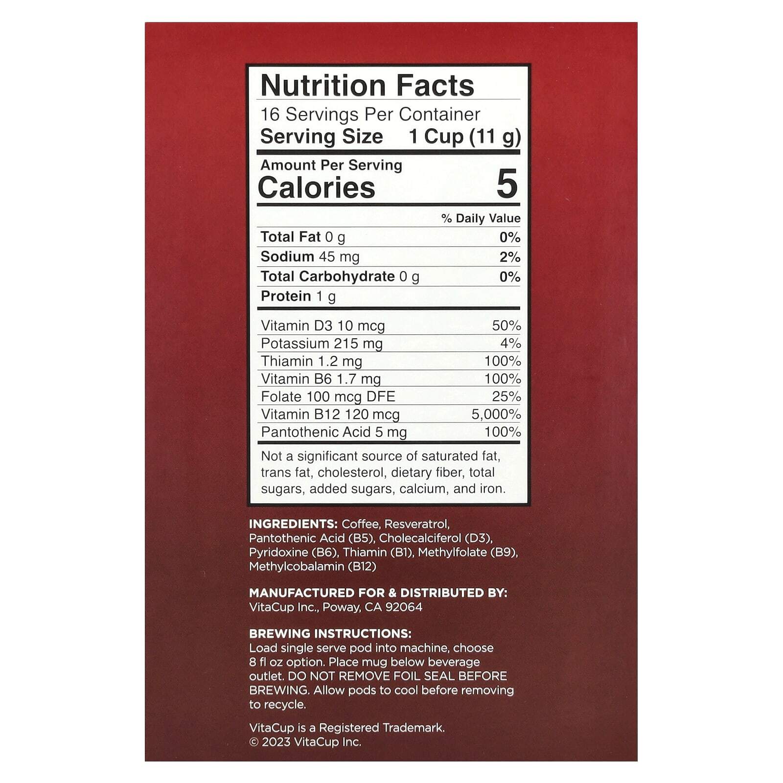 Кофе, ресвератрол, пантотеновая кислота (витамин B5), холекальциферол (витамин D3), пиридоксин (b6), тиамин (b1), метилфолат (b9), метилкобаламин (b12).
