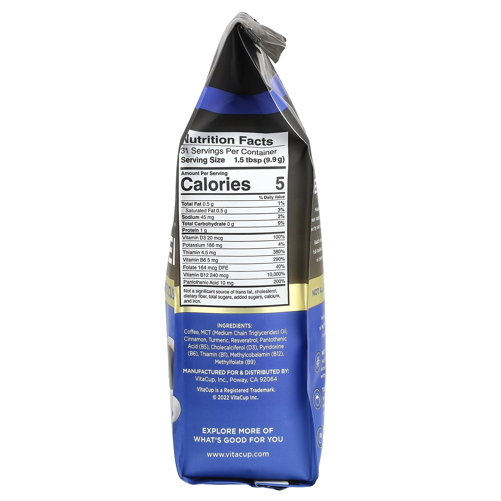 Кофе, масло среднецепочечных триглицеридов, корица, куркума, ресвератрол, пантотеновая кислота (витамин B5), холекальциферол (витамин D3), пиридоксин (b6), тиамин (b1), метилкобаламин (b12), метилфолат (b9).