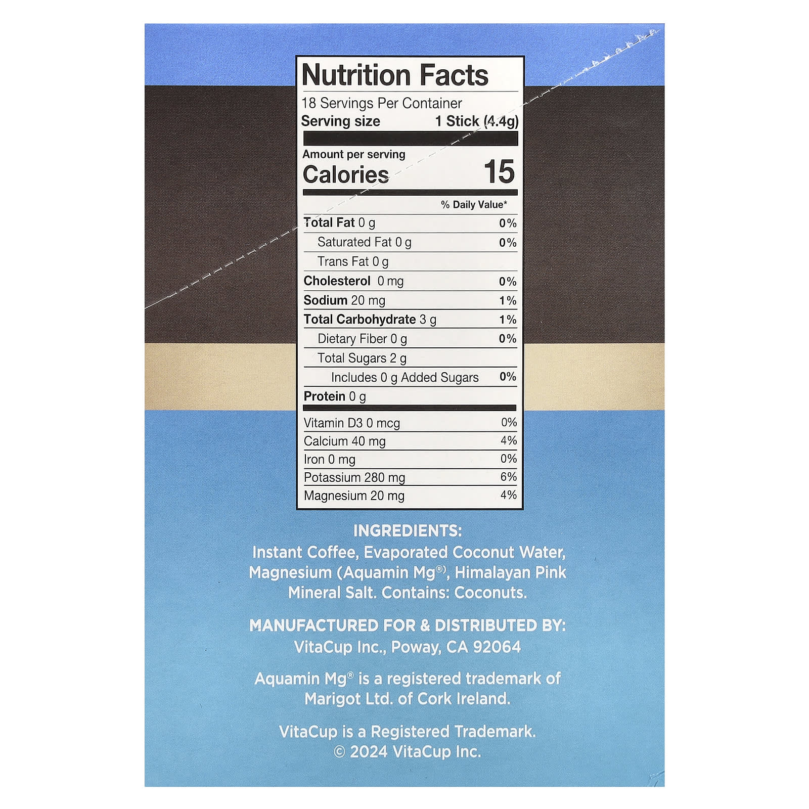 VitaCup, Растворимый кофе с электролитами для гидратации, средняя обжарка, 18 порционных палочек, по 4,4 г (0,16 унции)