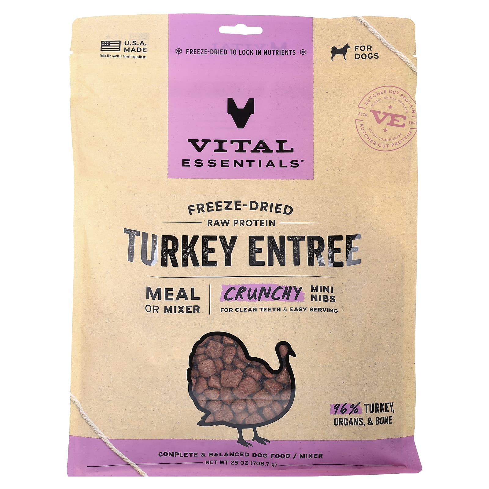 Хрустящие мини-бобы из блюда из индейки с сублимированным сырым протеином Vital Essentials™ разработаны в соответствии с уровнями питательных веществ, установленными ассоциацией AAFCO для кормов для собак на всех этапах жизни, включая рост собак крупных размеров (70 фунтов или более во взрослом возрасте).