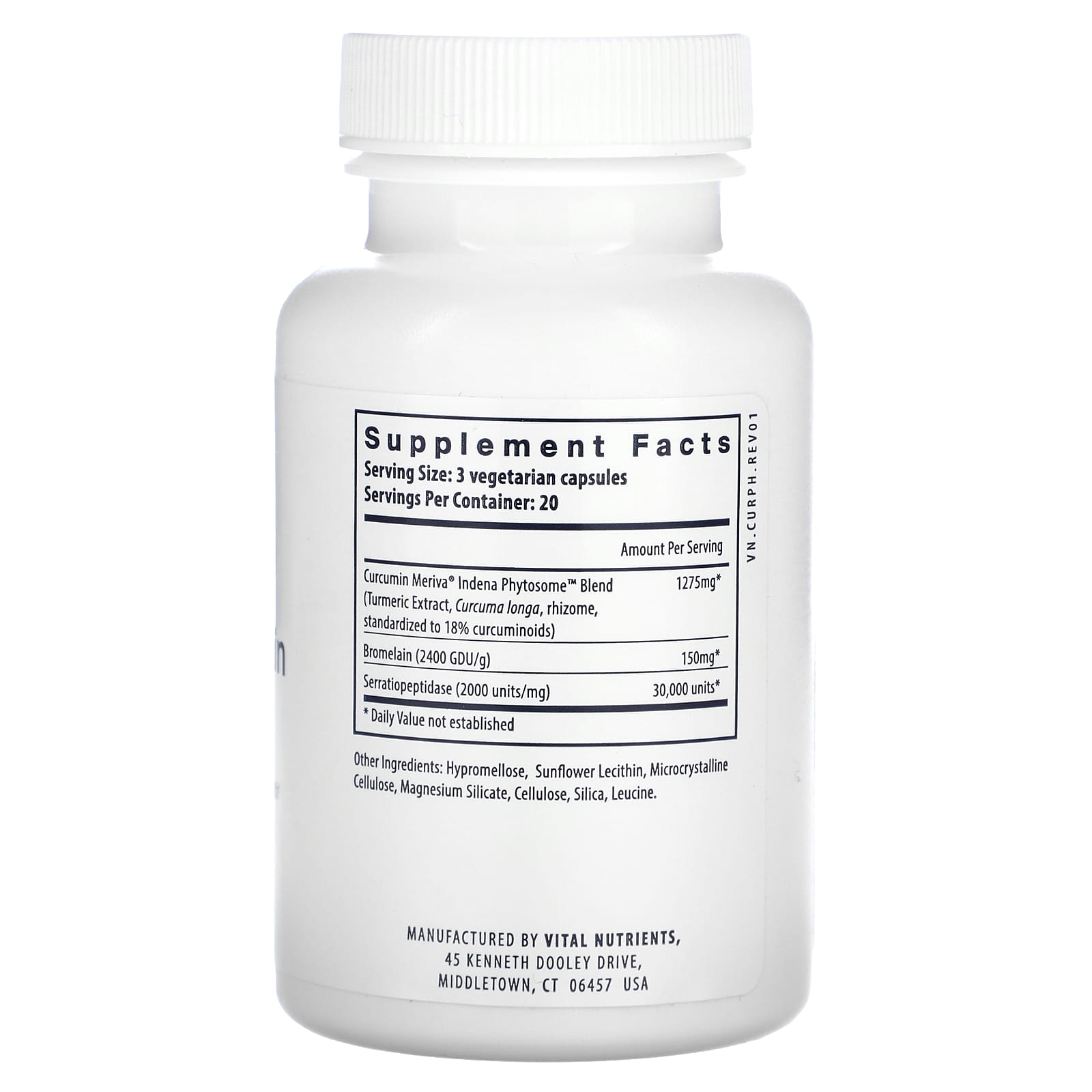 Ферменты Phyto-Curcumin Plus содержат экстракт фитосом куркумина, бромелаин и серратиопептидазу. Экстракт фитосом куркумина сочетает в себе экстракт корневища растения Curcuma longa с фосфатидилхолином, фосфолипидом, для повышения биодоступности куркумина. Бромелаин и серратиопептидаза - это протеолитические ферменты, которые работают синергетически с экстрактом фитосом куркумина для поддержания здорового воспалительного баланса, а также здоровья опорно-двигательного аппарата, кишечника, печени и сердечно-сосудистой системы.