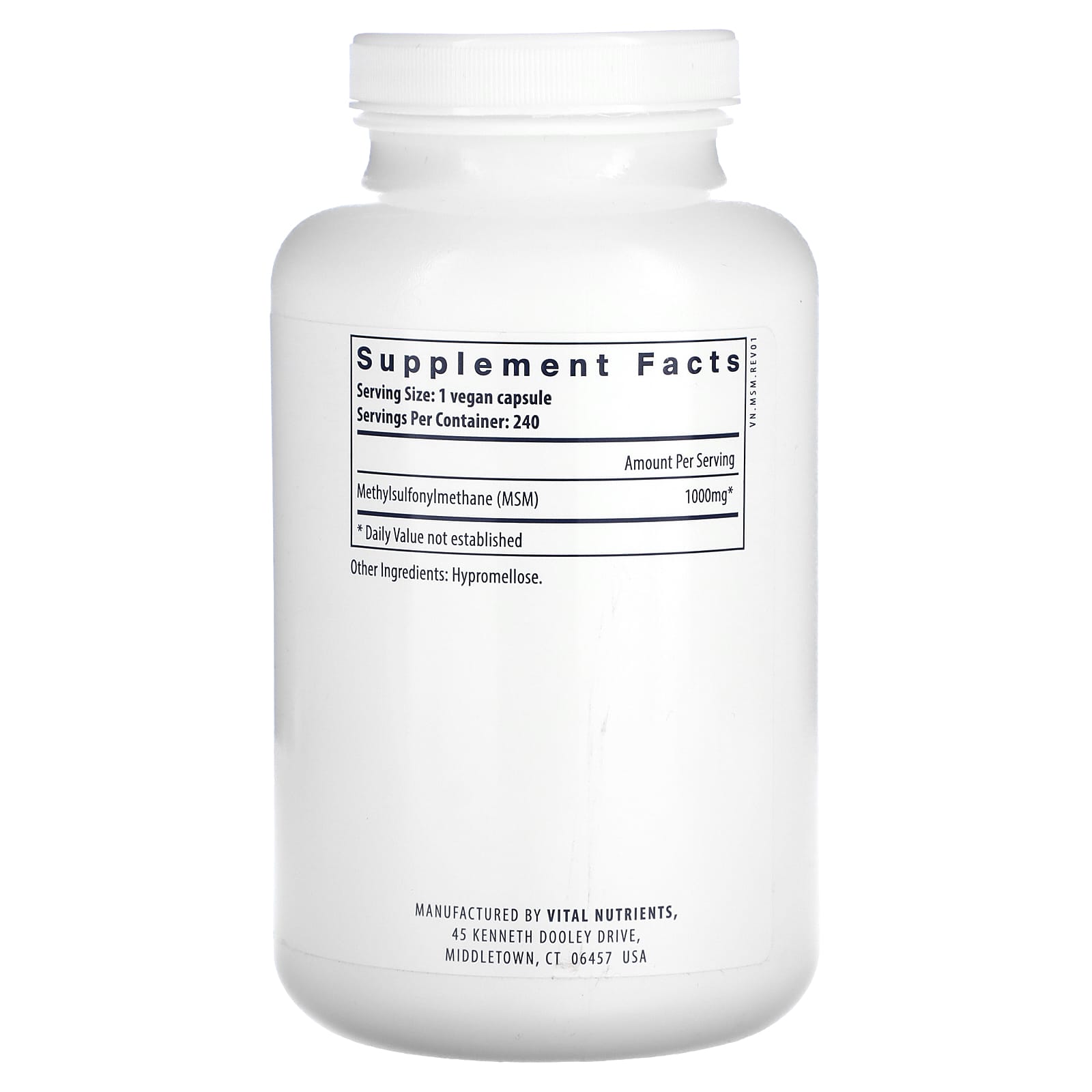 1000 мг МСМ содержит метилсульфонилметан, форму органической серы без запаха, которая в небольших количествах содержится в фруктах, овощах, зернах и животных. Исследования in vitro показали, что МСМ может действовать как антиоксидант. МСМ поддерживает нормальную работу тканей. Добавки с МСМ также могут способствовать здоровью суставов, поддерживая здоровую подвижность и функцию, а также поддерживая нормальный комфорт суставов. 1000 мг МСМ также могут способствовать стабильности клеточных мембран, воспалительному балансу и здоровью толстой кишки.