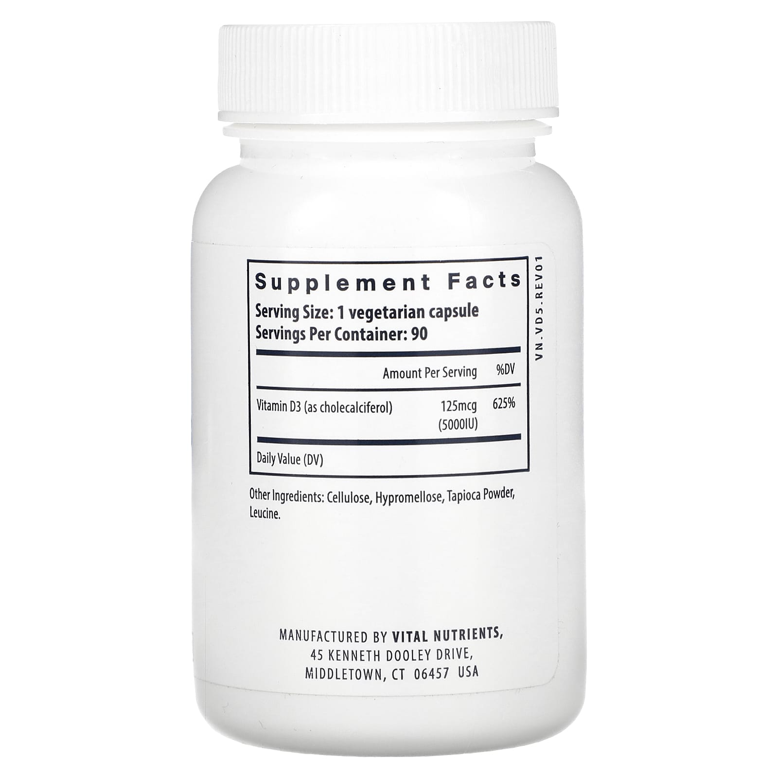 Vital Nutrients, Витамин D3, 5000 МЕ, 90 вегетарианских капсул