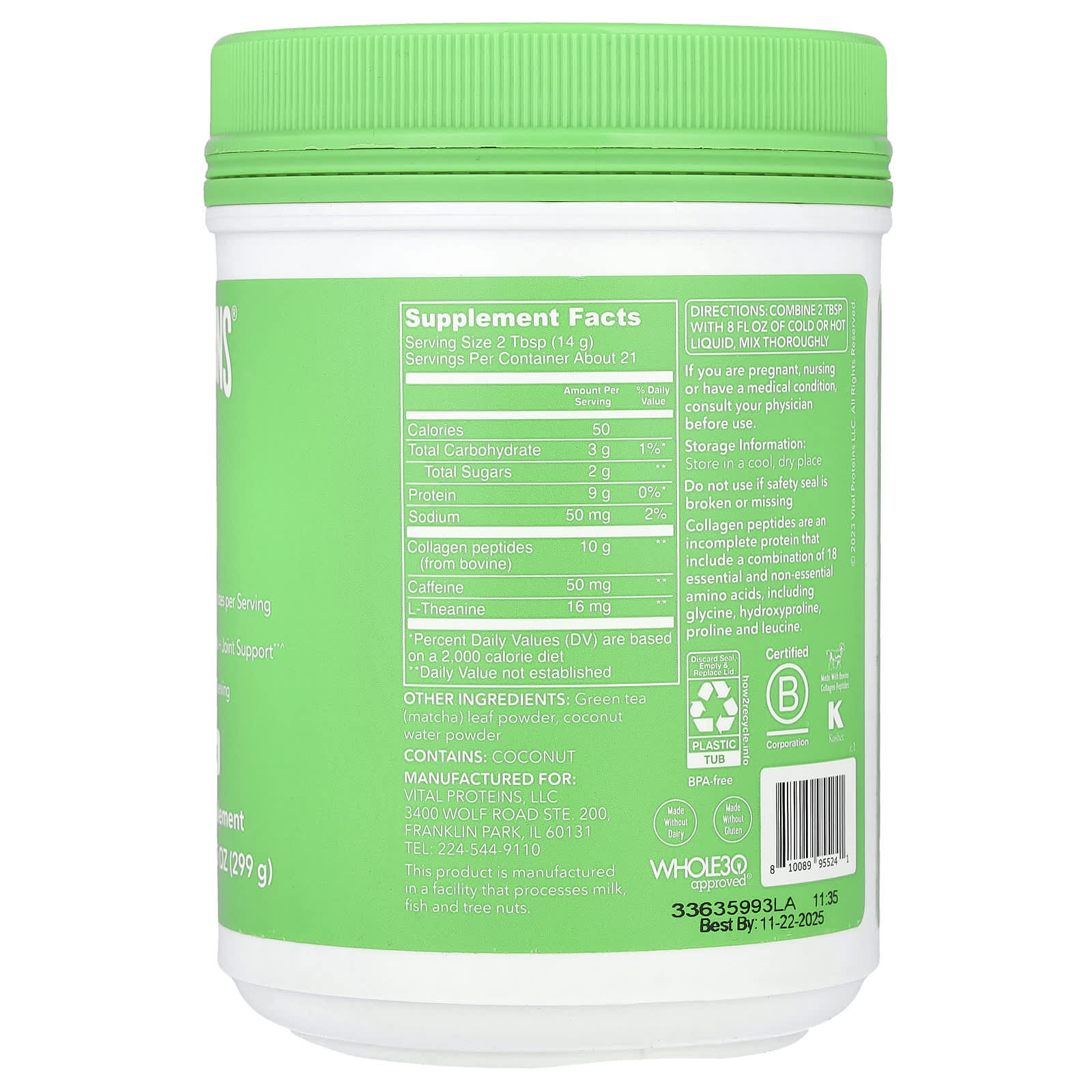 Матча и коллаген создают восхитительный рацион, который вы можете забыть. Содержит смесь зеленого чая матча и 10 г наших пептидов коллагена в каждой порции для поддержки волос, кожи, ногтей, костей и суставов ^.