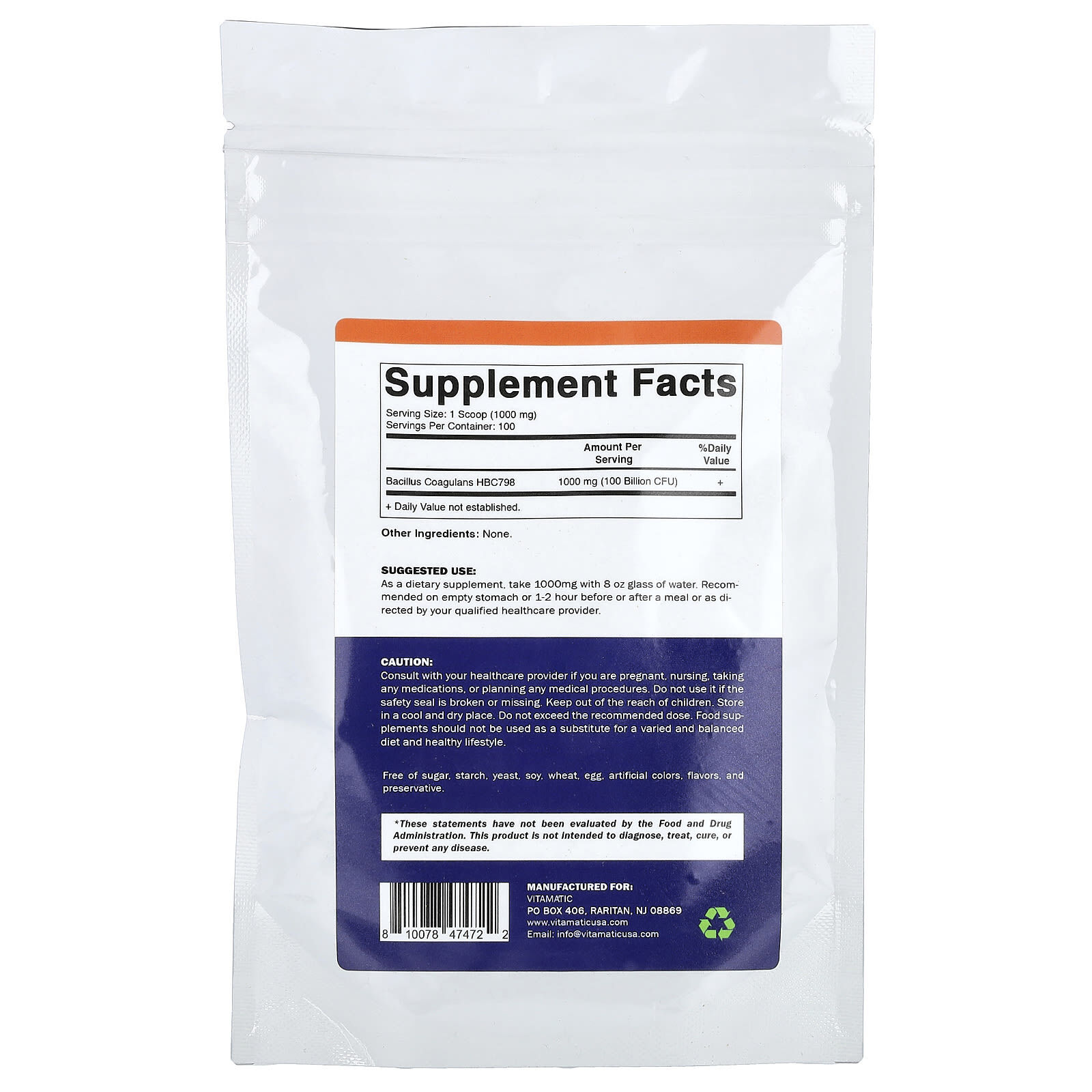 | Бактерии бациллус коагуланс (B. coagulans) HBC798 | 1000 мг (100 млрд КОЕ) | + |