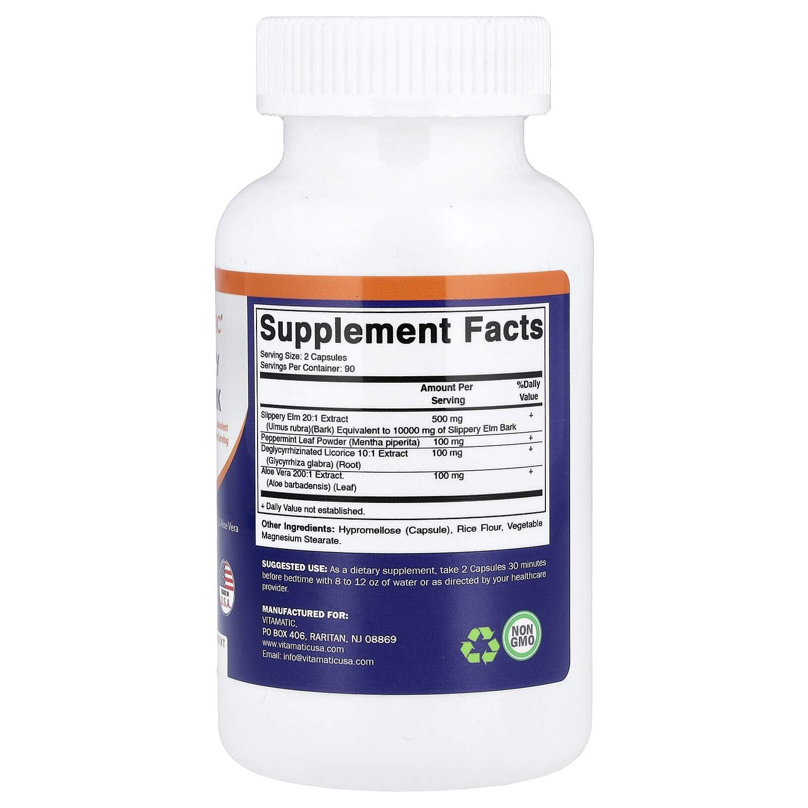 | Экстракт коры скользкого вяза 20:1 (Ulmus rubra), эквивалентный 10 000 мг коры скользкого вяза | 500 мг | + |