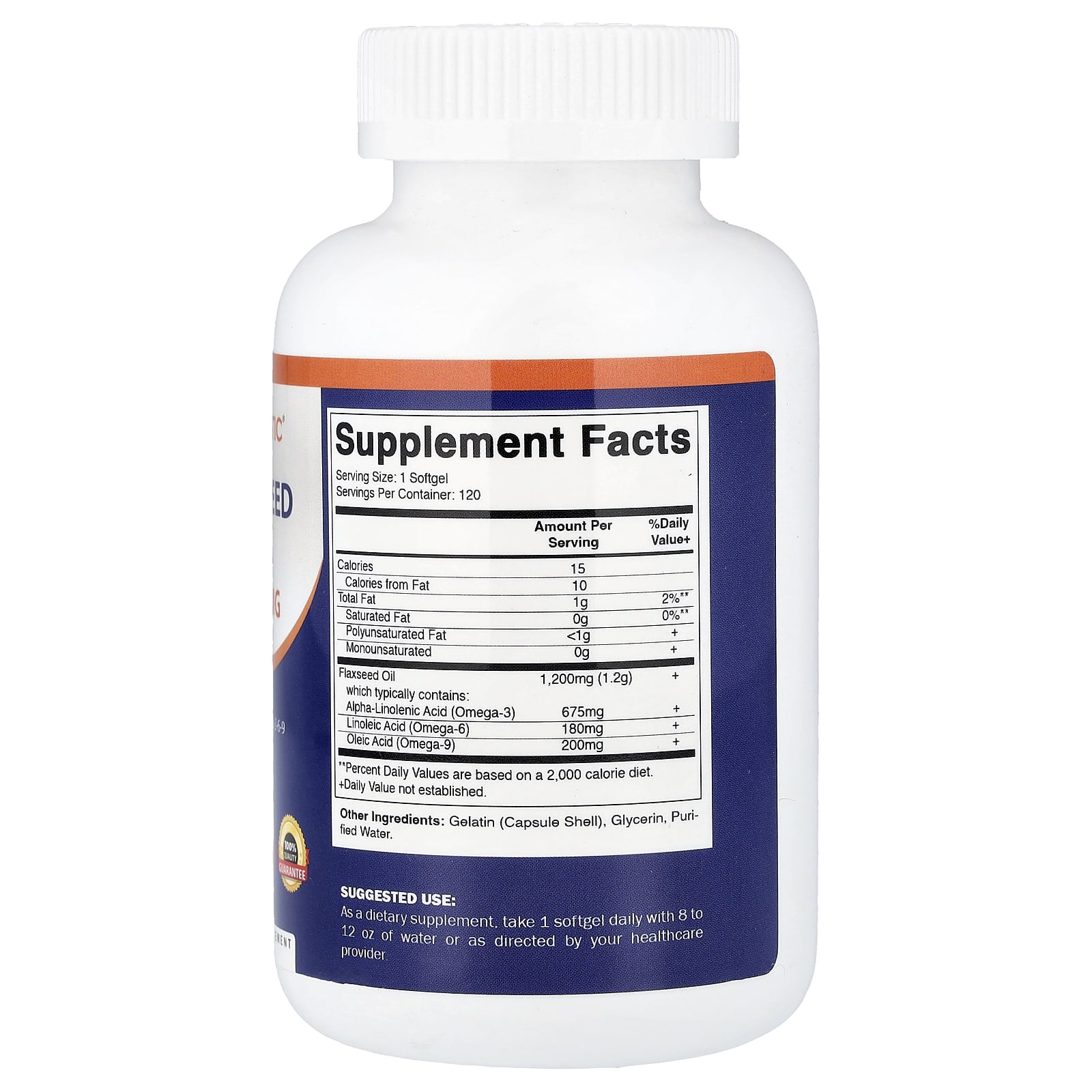 | Льняное масло Она обычно содержит Альфа-линоленовая кислота (омега-3) | 1200 мг (1,2 г) 675 мг | + + |