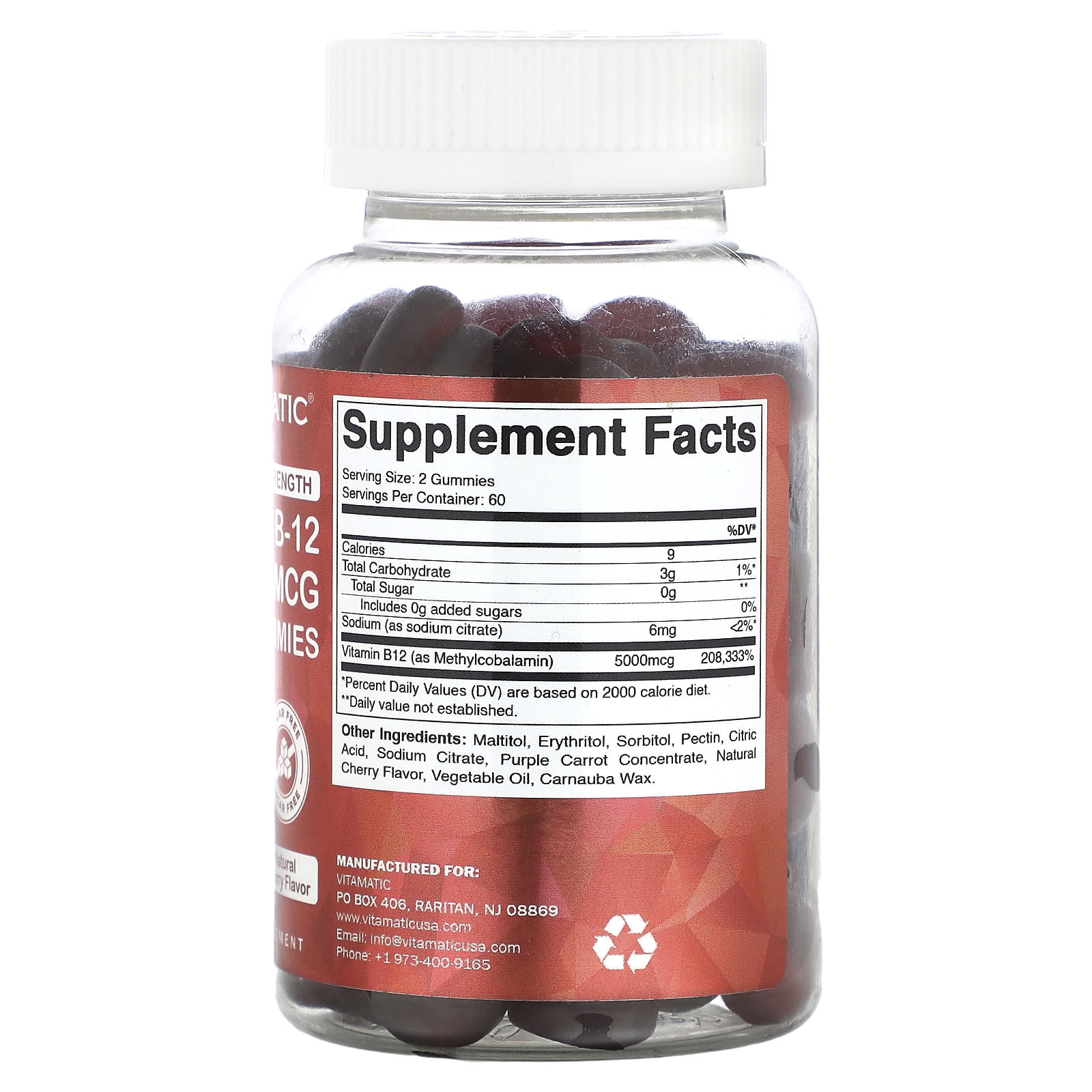 Мальтит, эритритол, сорбитол, пектин, лимонная кислота, цитрат натрия, концентрат фиолетовой моркови, натуральный ароматизатор «Вишня», растительное масло, карнаубский воск.