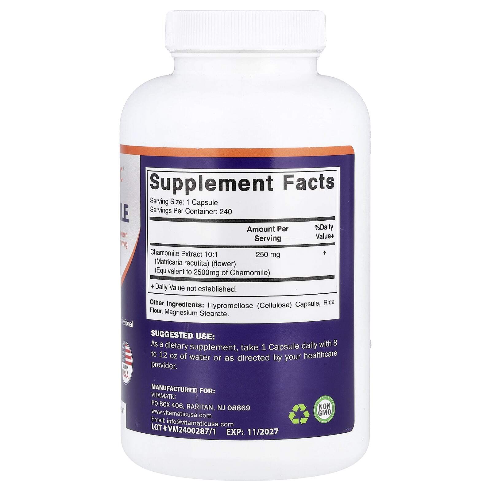 Сделайте шаг к естественному расслаблению с помощью ромашки Vitamatic. Эта добавка с ромашкой станет идеальным дополнением к вашему уходу за собой, если вам нужно средство для сна или просто расслабиться в течение напряженного дня.