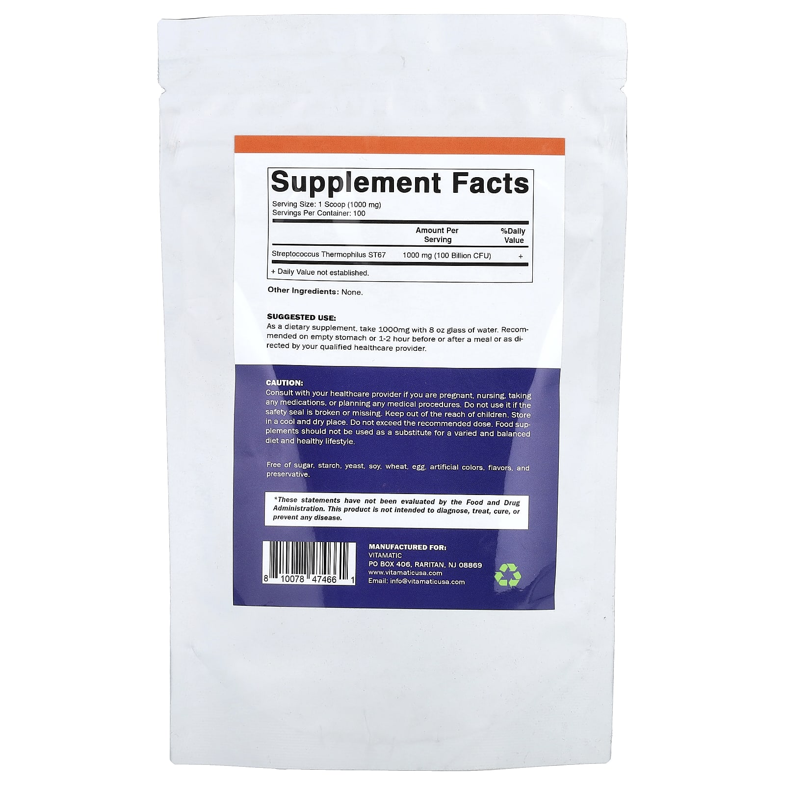 Проконсультируйтесь с врачом, если вы беременны, кормите грудью, принимаете лекарства или планируете какие-либо медицинские процедуры. Не используйте его, если защитная пленка повреждена или отсутствует. Хранить в недоступном для детей месте. Хранить в сухом и прохладном месте. Не следует превышать рекомендуемую дозировку. Пищевые добавки не заменяют разнообразное и сбалансированное питание и здоровый образ жизни.