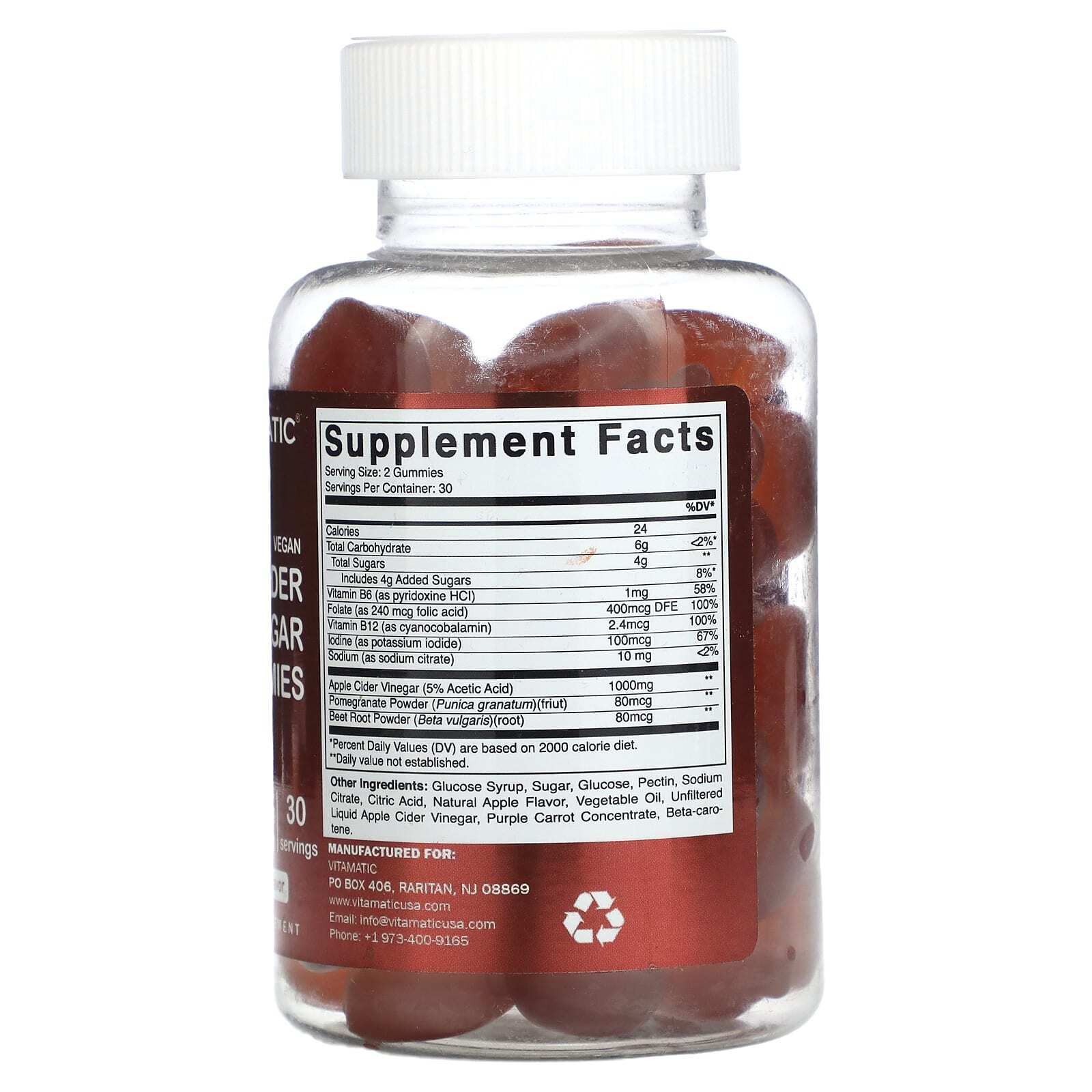 - Жевательные таблетки Vitamatic с яблочным уксусом обладают восхитительным яблочным вкусом. Избегайте употребления сырых жидкостей и таблеток из яблочного сидра, которые вызывают кислотный рефлюкс и неприятное послевкусие.