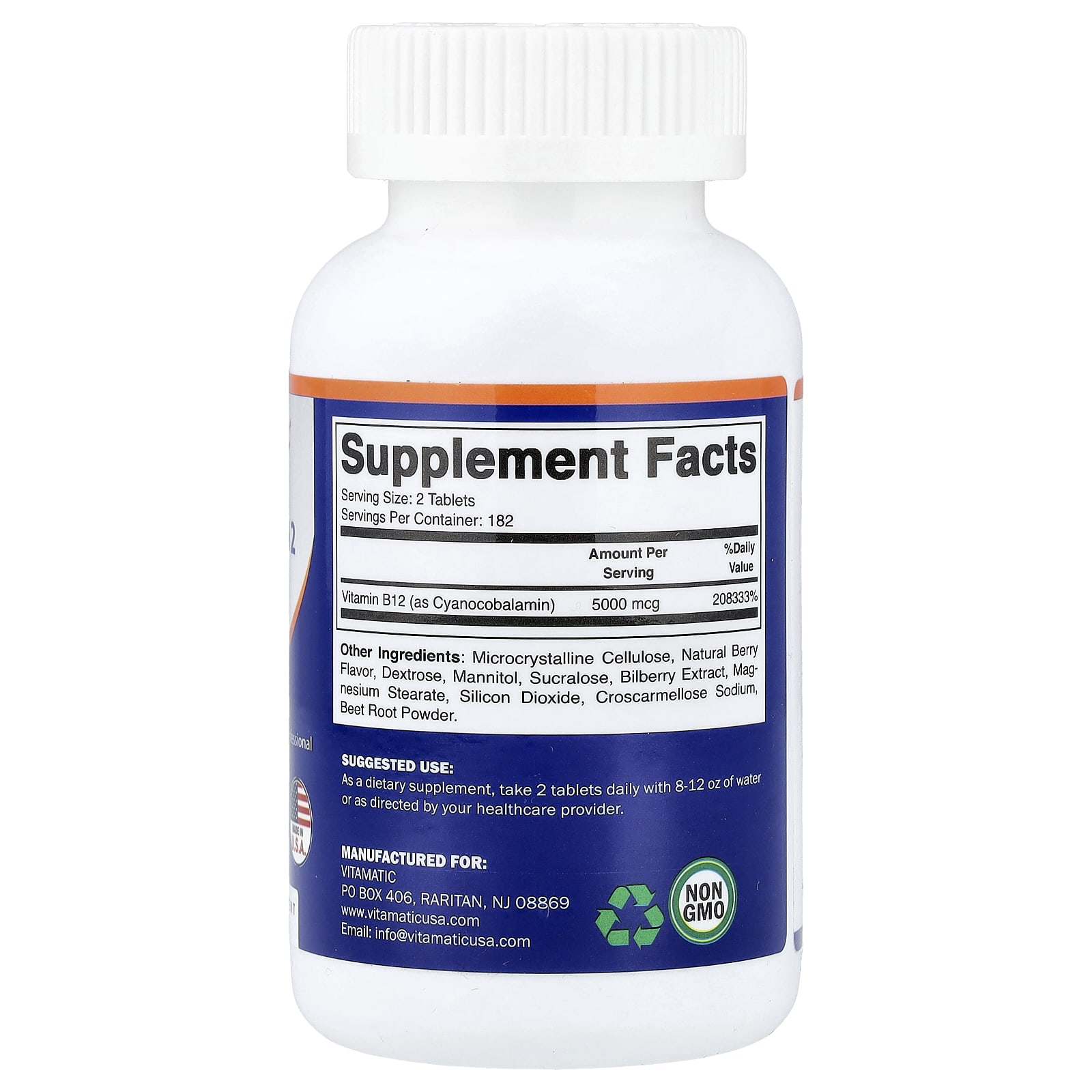 | Витамин B12 (в виде цианокобаламина) | 5 000 мкг | 208,333% |