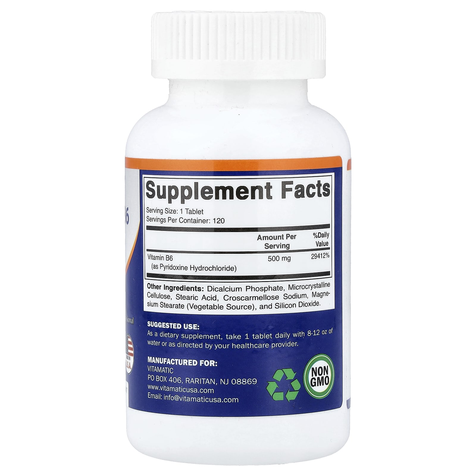 Vitamatic, Витамин B6, 500 мг, 120 таблеток