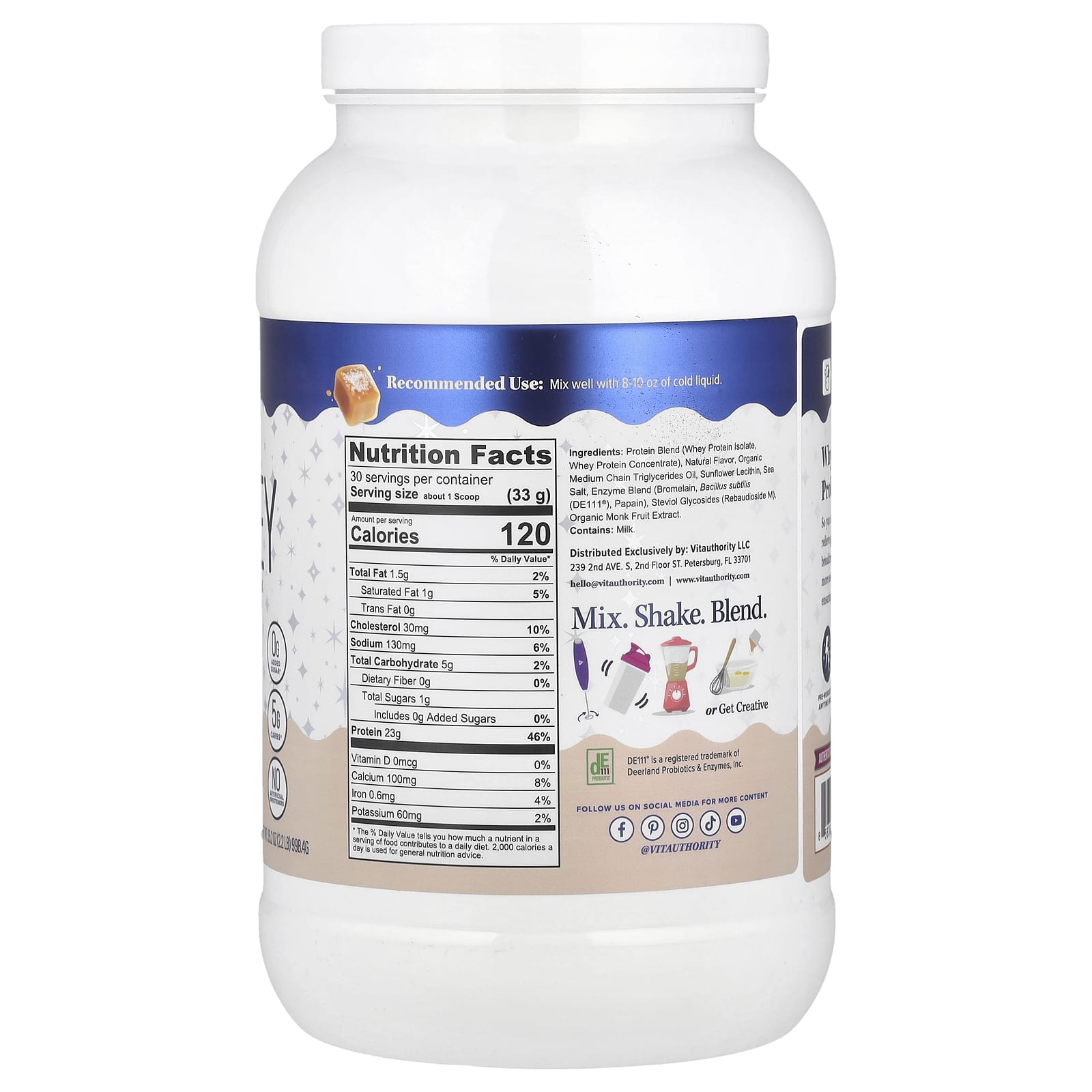 Протеиновая смесь (изолят сывороточного протеина, концентрат сывороточного протеина), натуральный ароматизатор, масло из органических среднецепочечных триглицеридов, подсолнечный лецитин, морская соль, смесь ферментов (бромелаин, бацилла (Bacillus subtilis) (DE111®), папаин), стевиоловые гликозиды (ребаудиозид м), органический экстракт плодов монаха.