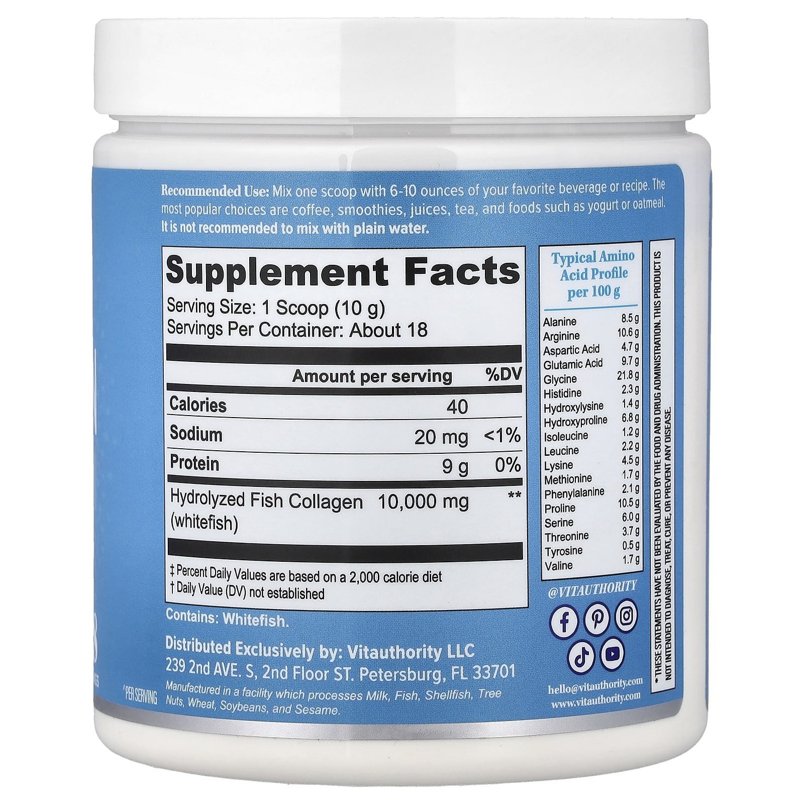 Чистая добавка из одного ингредиента, содержащая 10 000 мг гидролизованного рыбьего коллагена (сиг) в 1 мерной ложке. Этот порошок без вкусовых добавок содержит 9 граммов протеина без сахара, добавок и послевкусия — только для поддержки кожи, суставов и соединительной ткани. Легко сочетается с кофе, чаем, смузи и многим другим