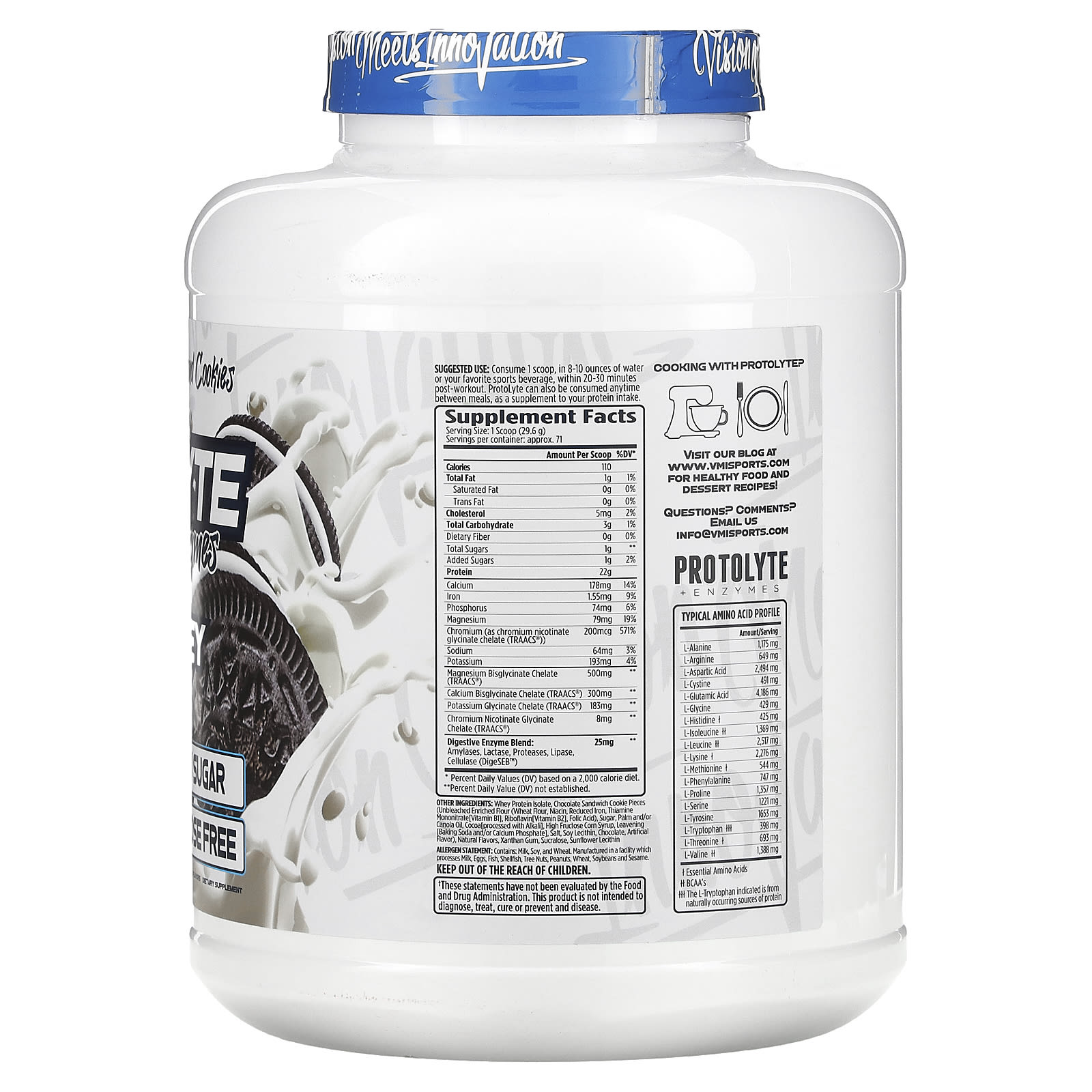 Изолят сывороточного протеина, кусочки шоколадного сэндвич-печенья (небеленая и обогащенная мука, ниацин, восстановленное железо, тиамина мононитрат, витамин B1], riboflavin[vitamin b2], фолиевая кислота), сахара, пальмовое и / или рапсовое масло, какао (обработанное щелочью), кукурузный сироп с высоким содержанием фруктозы, разрыхлительная сода и / или фосфат кальция], соль, соевый лецитин, шоколад, искусственный ароматизатор], натуральные ароматизаторы, ксантановая камедь, сукралоза, подсолнечный лецитин.