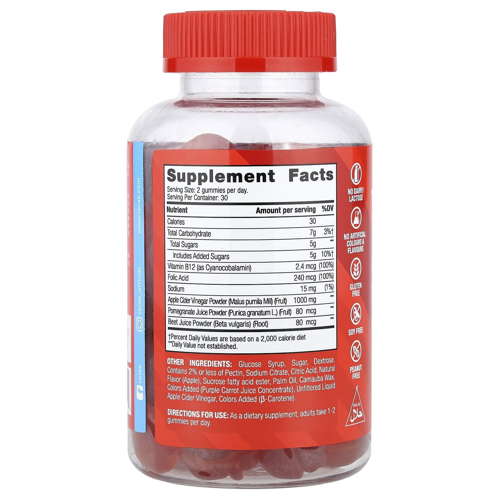 VPLAB жевательные таблетки с яблочным уксусом. Жевательные мармеладки с яблочным уксусом, витамином B12 и фолиевой кислотой.