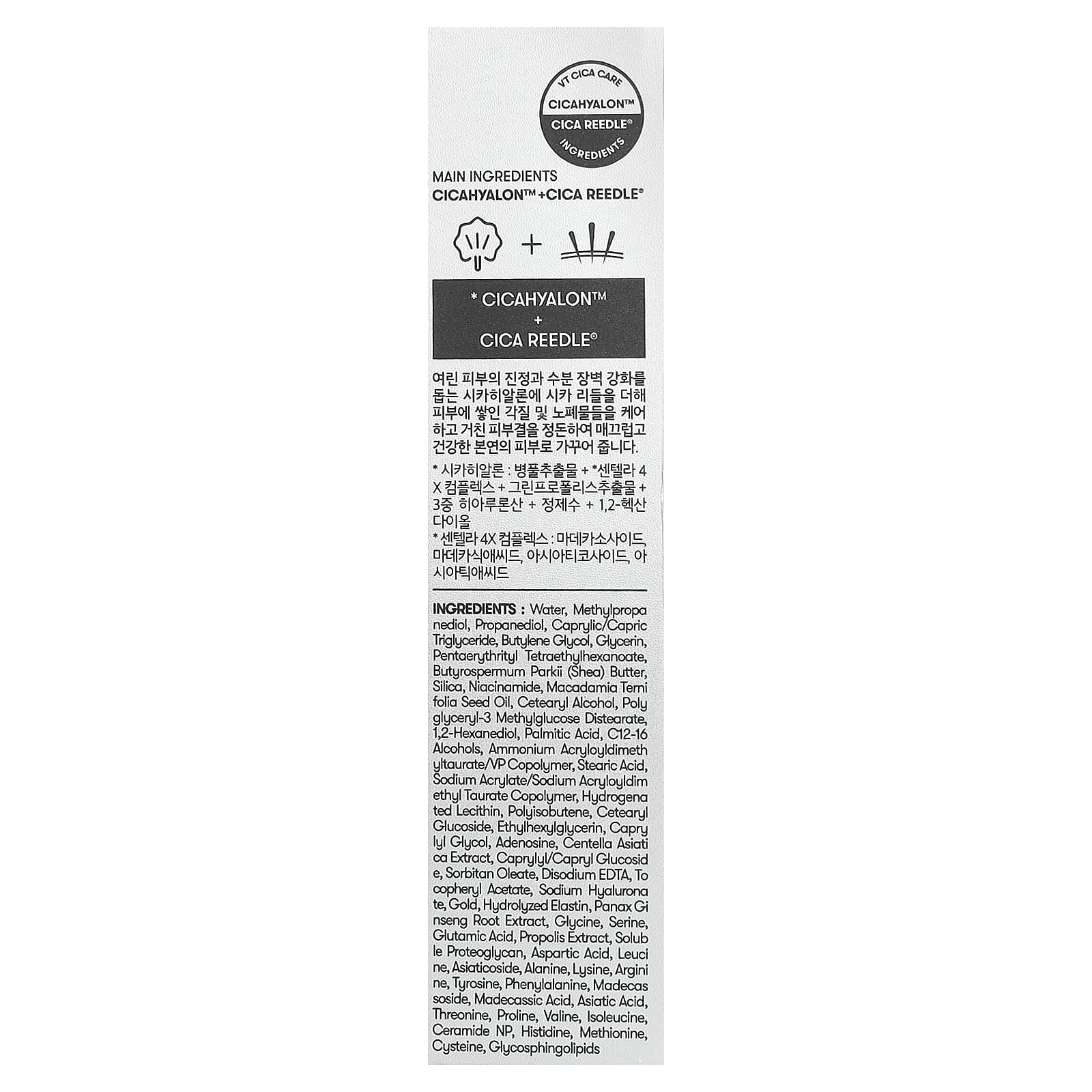 вода, метилпропандиол, пропандиол, каприловый/каприновый триглицерид, бутиленгликоль, глицерин, пентаэритритил тетраэтилгексаноат, масло ши (Butyrospermum parkii), диоксид кремния, никотинамид, масло макадамии (Macadamia ternifolia), цетеариловый спирт, полиглицерил-3 метилглюкозы дистеарат, 1,2-гександиол, пальмитиновая кислота, c12-16 спирты, аммоний акрилоилдиметилсульфата/ВП сополимер, стеариновая кислота, натрий акрилат/натрий акрилоилдимэтилтаурат сополимер, гидрогенизированный лецитин, полиизобутен, цетеариловый глюкозид, этилгексилглицерин, каприлилгликоль, аденозин, экстракт готу колы (Centella asiatica), каприлил/каприл глюкозид, сорбитанолеат, двунатриевая ЭДТК, токоферилацетат, гиалуронат натрия, золото, гидролизованный эластин, экстракт корня женьшеня (Panax ginseng), глицин, серин, глутаминовая кислота, экстракт прополиса, растворимый протеогликан, аспарагиновая кислота, лейцин, азиатикозид, аланин, лизин, аргинин, тирозин, фенилаланин, мадекассосид, мадекассовая кислота, азиатиковая кислота, треонин, пролин, валин, изолейцин, керамид NP, гистидин, метионин, цистеин, гликосфинголипиды.