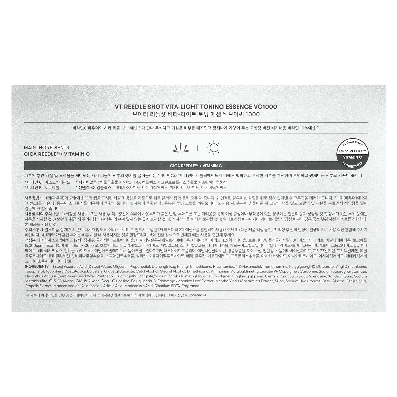 Формула Reedle Shot Vita-Light содержит витамины C и E, а также феруловую кислоту, которые заметно усиливают сияние, улучшая и выравнивая тон кожи.