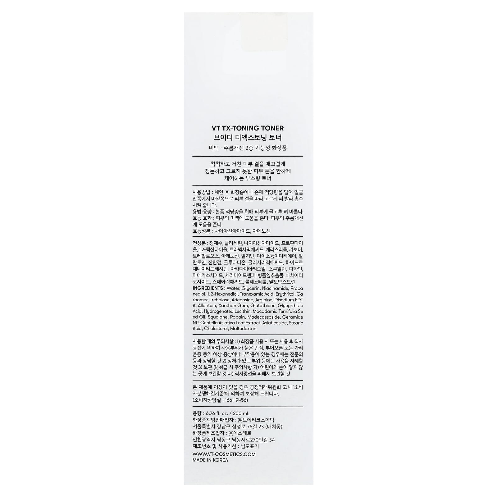 Вода, глицерин, никотинамид, пропа недиол, 1,2-гександиол, транексамовая кислота, эритритол, карбомер, трегалоза, аденозин, аргинин, двунатриевая ЭДТК, аллантоин, ксантановая камедь, глутатион, глицирризиновая кислота, гидрогенизированный лецитин, масло макадамии (Macadamia ternifolia), сквалан, папаин, мадекассосид, керамид NP, экстракт листьев готу колы (Centella asiatica), азиатикозид, стеариновая кислота, холестерина, мальтодекстрин.
