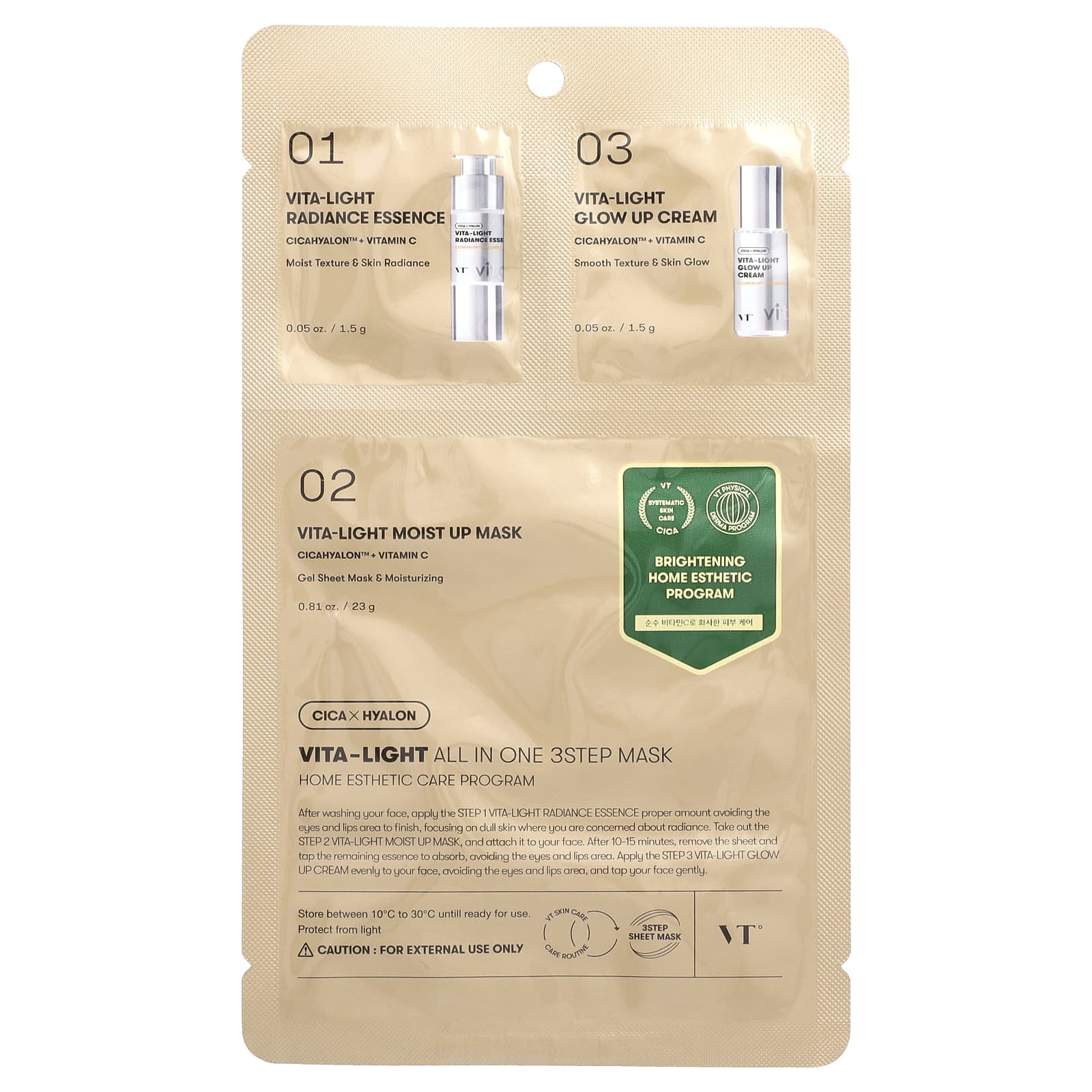 После умывания нанесите необходимое количество эссенции для сияния кожи Vita-Light Radiance Essence, избегая области вокруг глаз и губ. Сосредоточьтесь на тусклой коже, где вы хотите сиять. Возьмите увлажняющую маску Vita-Light Moist Up Mask и нанесите ее на лицо. Через 10–15 минут снимите маску и распределите остатки эссенции похлопывающими движениями, избегая области вокруг глаз и губ. Равномерно нанесите крем для сияния кожи Vita-Light на лицо, избегая области вокруг глаз и губ, и аккуратно похлопайте по лицу.