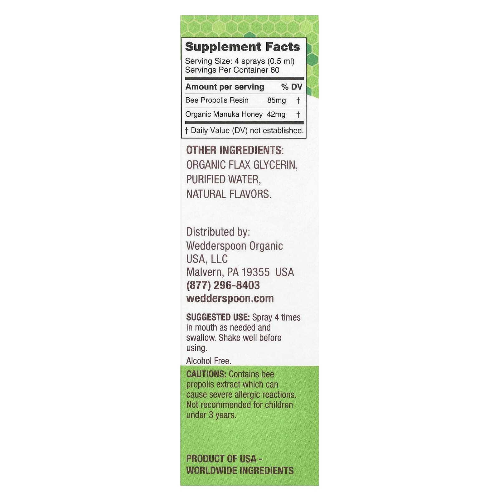 Спрей с медом и прополисом Wedderspoon успокаивает горло и поддерживает иммунную систему.