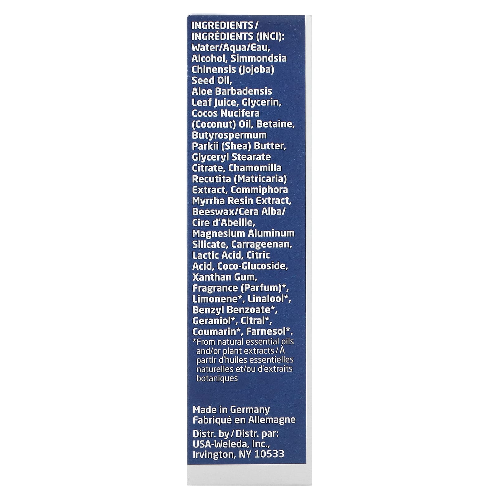 Вода (Aqua/eau), спирт, масло из семян жожоба (Simmondsia chinensis), сок из листьев алоэ вера (Aloe barbadensis), глицерин, кокосовое масло (Cocos nucifera), бетаин, масло ши (Butyrospermum parkii), глицерил стеарат цитрат, экстракт ромашки лекарственной (Chamomilla recutita), экстракт камеди мирры (Commiphora myrrha), пчелиный/белый воск (Cera alba), алюмосиликат магния, каррагинан, молочная кислота, лимонная кислота, кокоглюкозид, ксантановая камедь, отдушка (парфюмерная композиция)*, лимонен*, линалоол*, бензилбензоат*, гераниол*, цитраль*, кумарин*, фарнезол*.