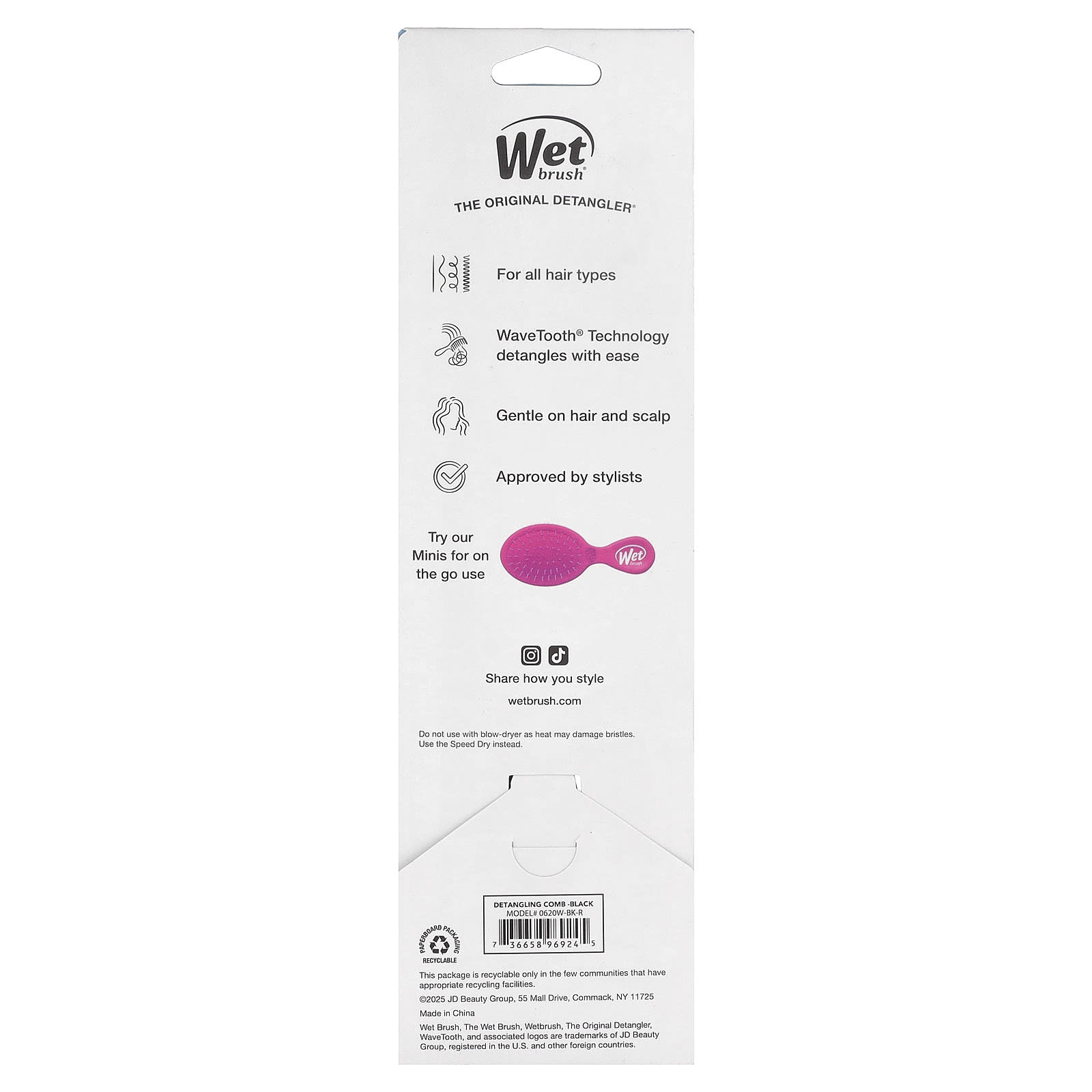 Конструкция Wave Tooth ™ равномерно распределяет волосы по зубам для легкого расчесывания.
