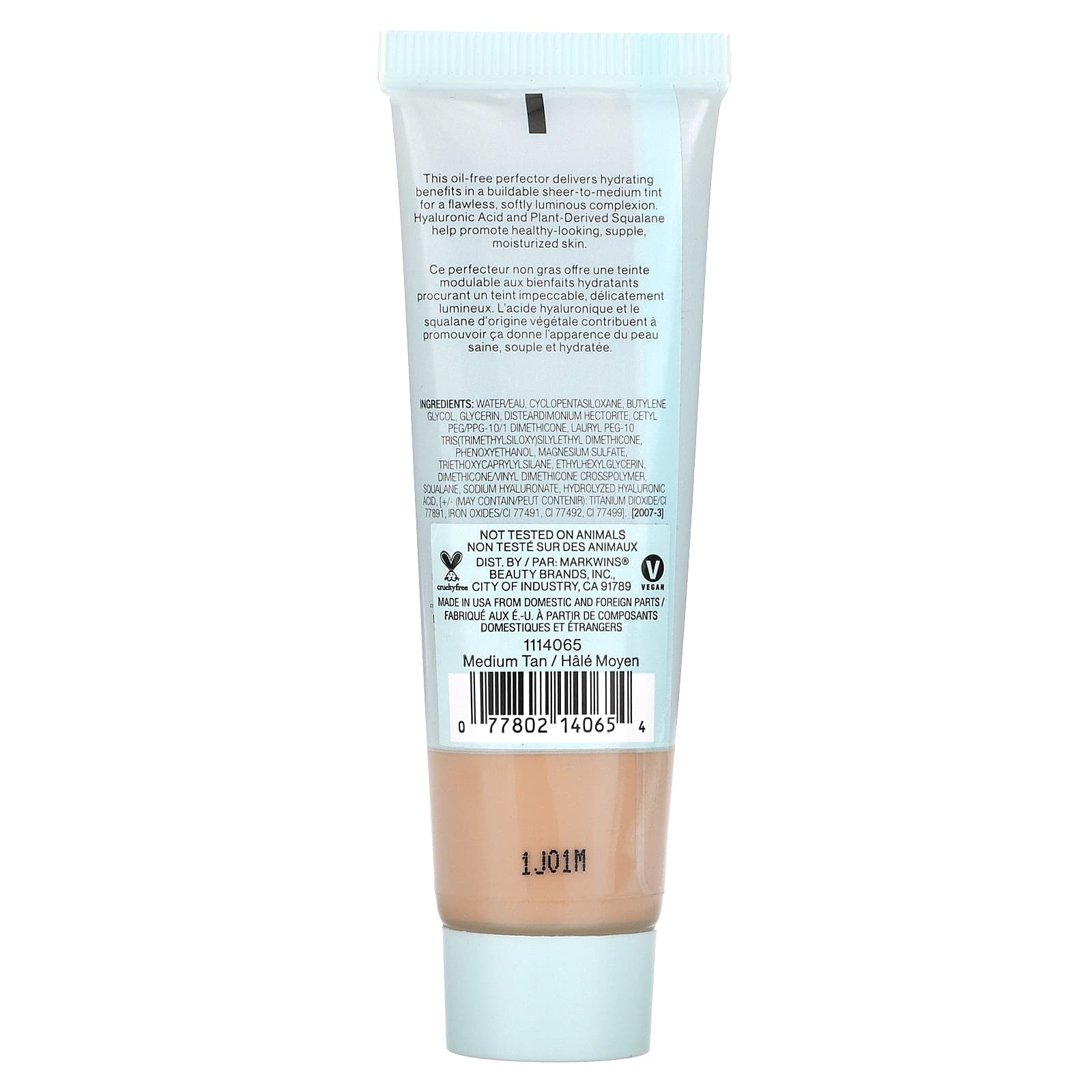 Вода, циклопентасилоксан, бутиленгликоль, глицерин, дистеардимониум гекторит, цетил ПЭГ/ППГ-10/1 диметикон, лаурил ПЭГ-10 трис (триметилсилокси) силилэтилдиметикон, феноксиэтанол, сульфат магния, триэтоксикаприлилсилан, этилгексилглицерин, диметикон/винил диметикон кроссполимер, сквалан, гиалуронат натрия, гидролизованная гиалуроновая кислота, [+/- (может содержать диоксид титана / CI 77891, оксиды железа (CI 77491, CI 77492, CI 77499].